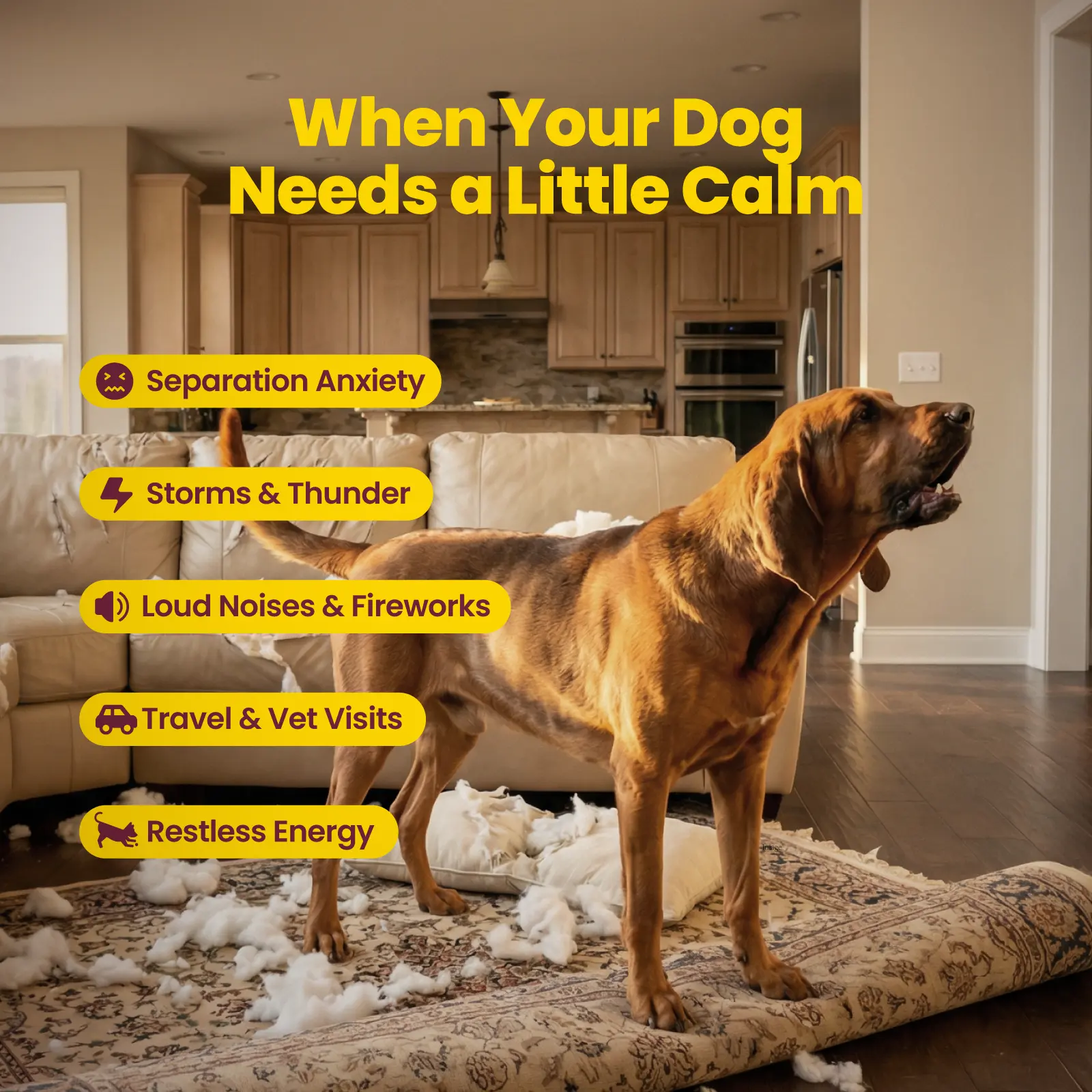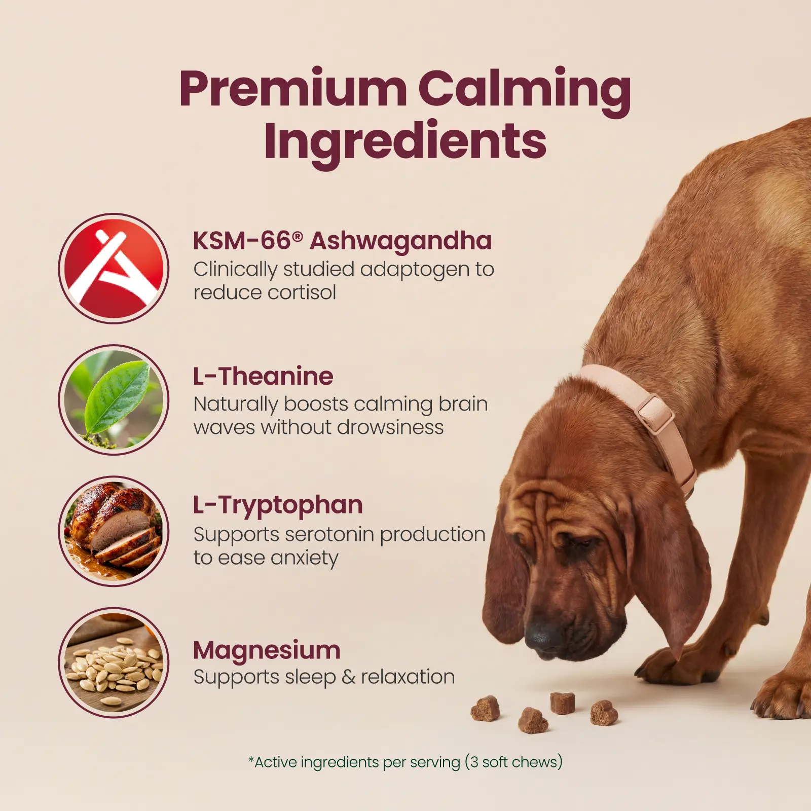 Our male dog was always on edge—pacing and reacting to every little noise. These calming chews have really helped him relax and settle down more. He still acts like himself, just less tense. Plus he loves the taste, so giving them is easy. Great addition to his routine.