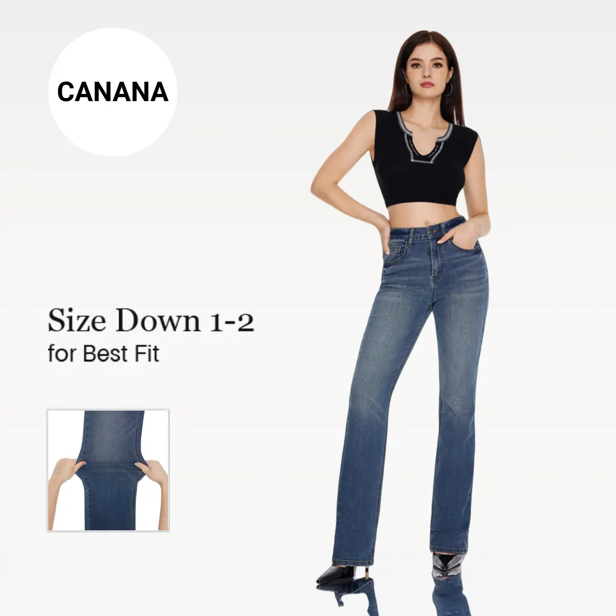 CANANA Women High-waisted Stretchy Bootcut Jeans Buckle Baggy Pants Medium Blue SH25F05 Underwear Streetwear Lady Trouser Comfortable Flare DenimCANANA Women High-waisted Stretchy Bootcut Jeans Buckle Baggy Pants Medium Blue SH25F05 Underwear Streetwear Lady Trouser Comfortable Flare Denim