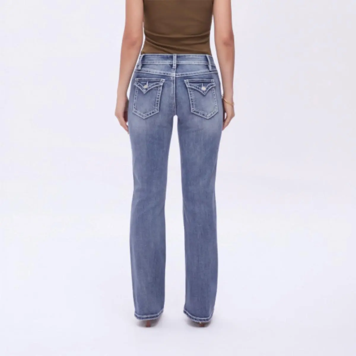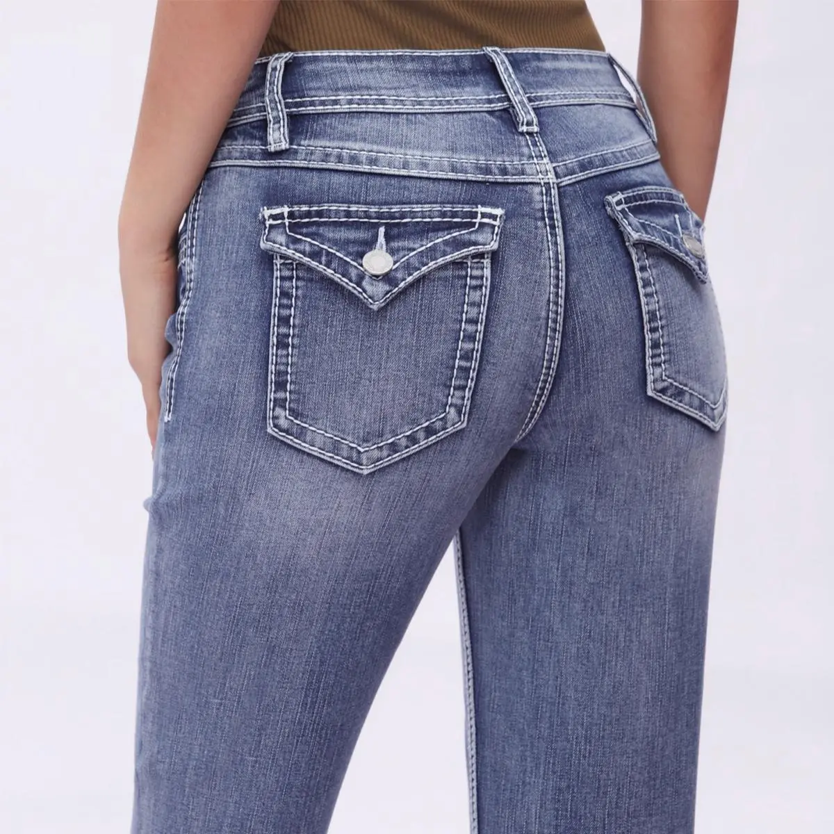 5. Morgan BlueMoment Bootcut Jeans Low Rise with Flap Pockets Western Cowgirls Stretchy Denim Pants Retro BBL Tummy Control