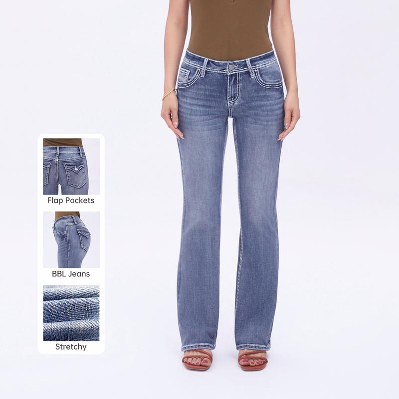 ·Flattering Bootcut FitDesigned to hug through the hips and thighs, then flare slightly below the knee—perfect for elongating the legs and pairing with boots or heels.