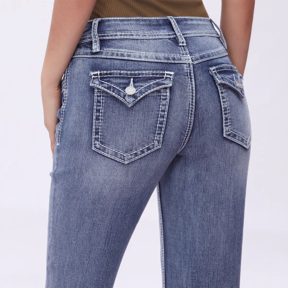 Bucklina – flap back pockets that add a rugged, classic touch.