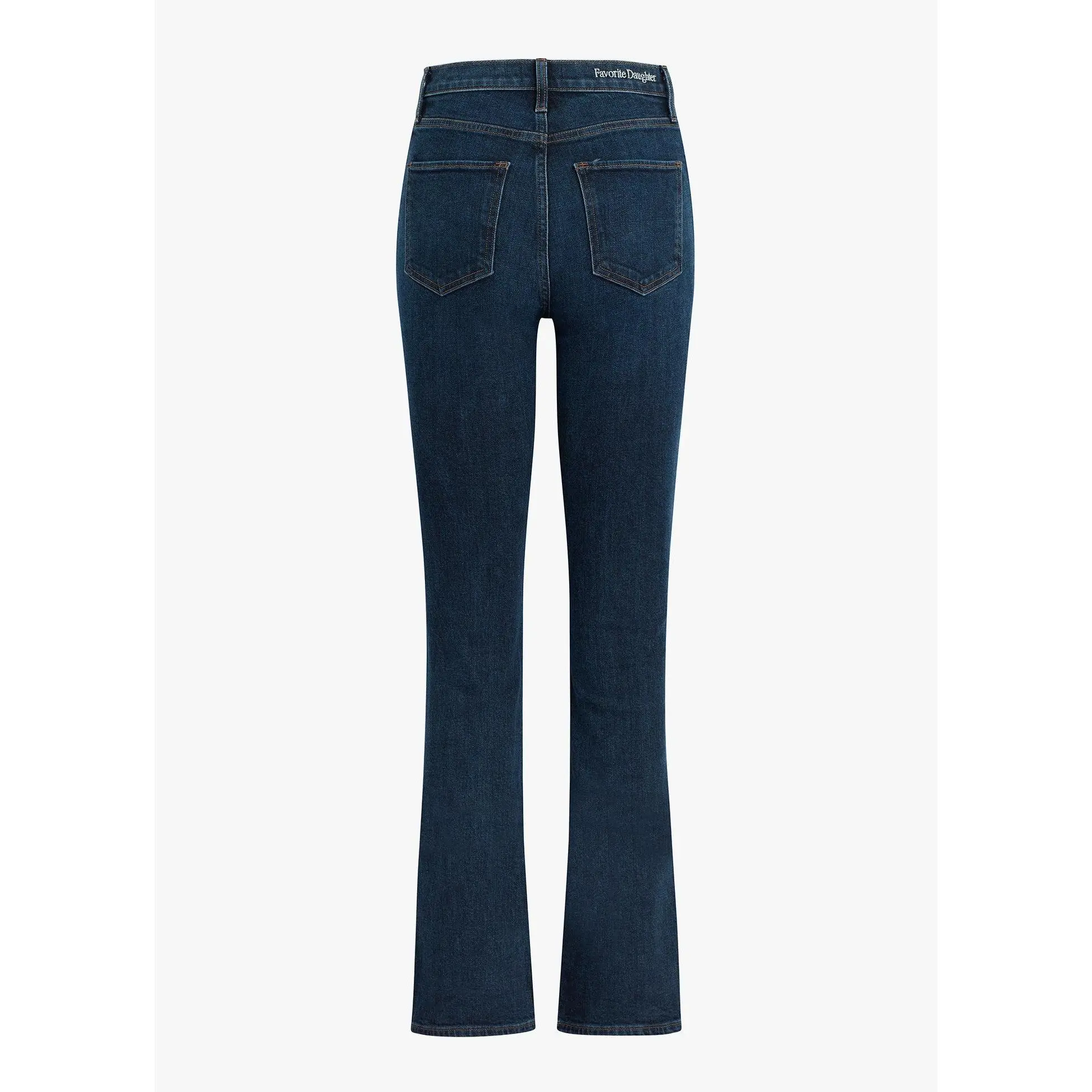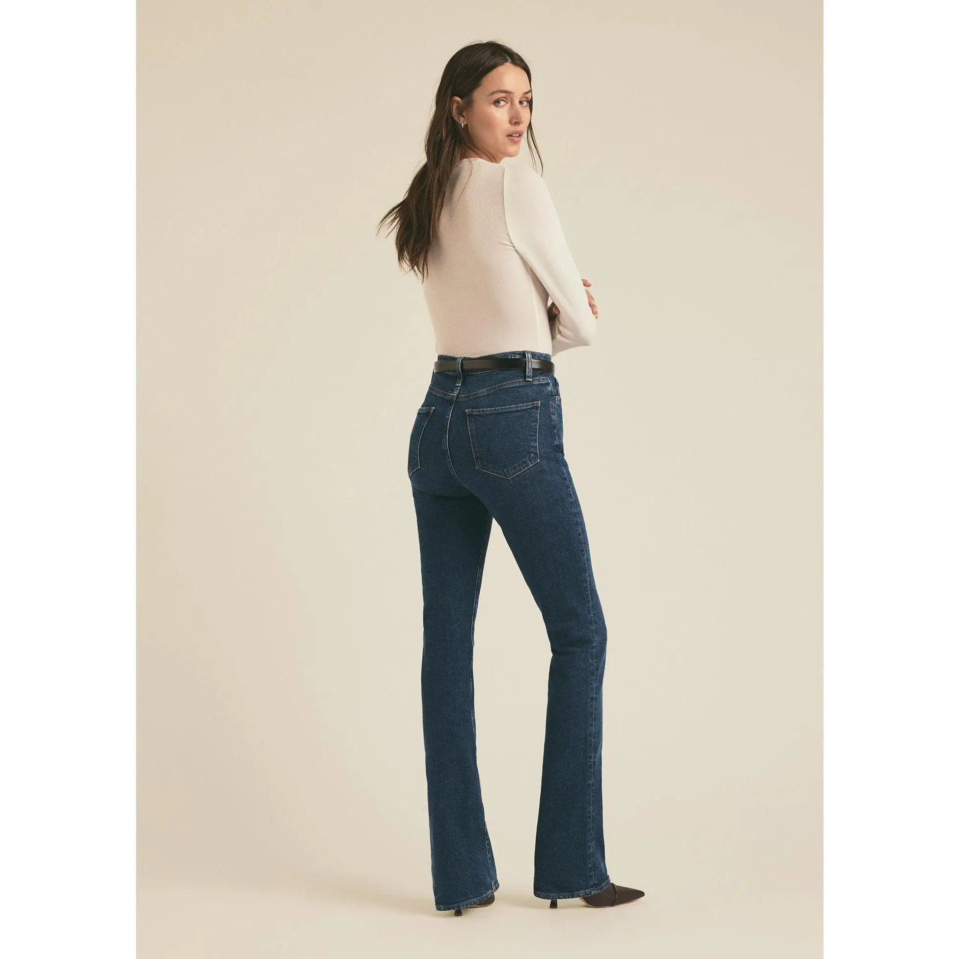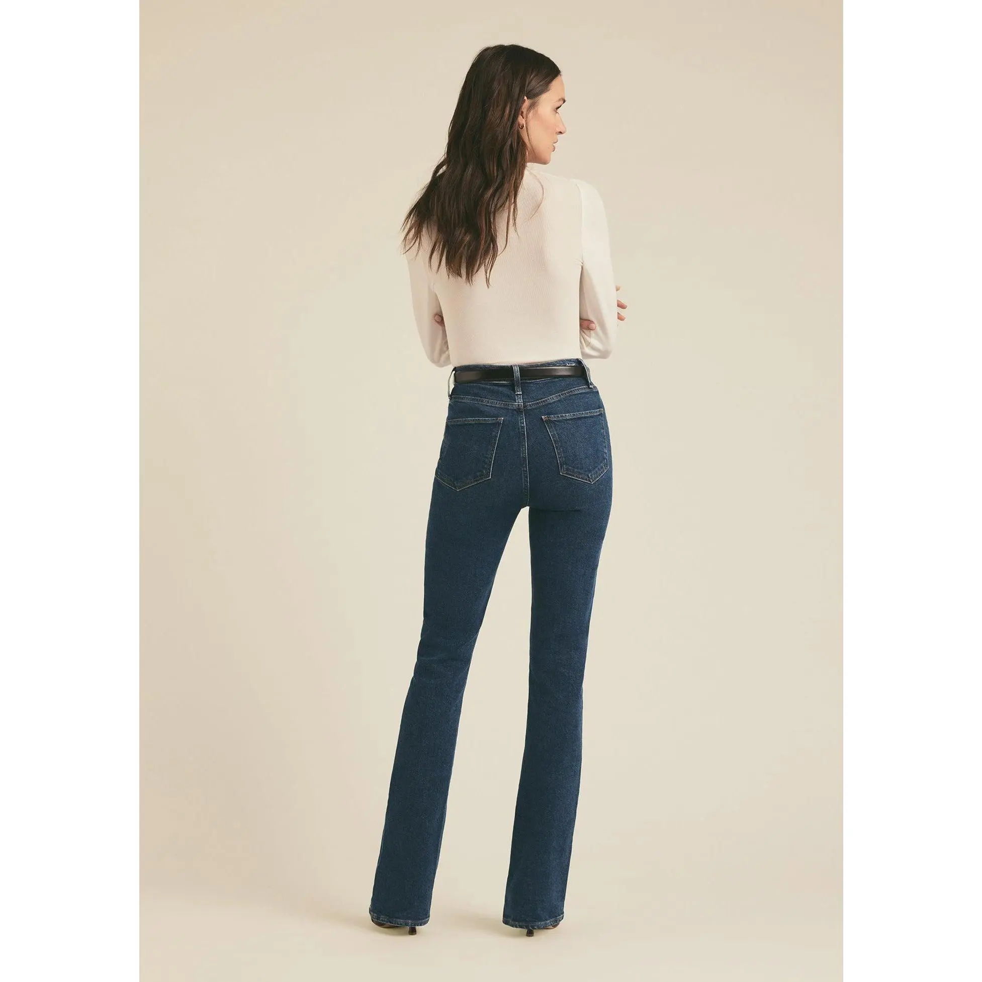 A high five for the super high rise 11.5" bootcut jeans. The retro-inspired style of Woodside gives the Valentina a slimming, rich, dark blue indigo and the stretch gives this denim a well-fitted silhouette. (Gentle fading and whiskering plus Favorite Daughter embroidery on the back waistband, of course.)