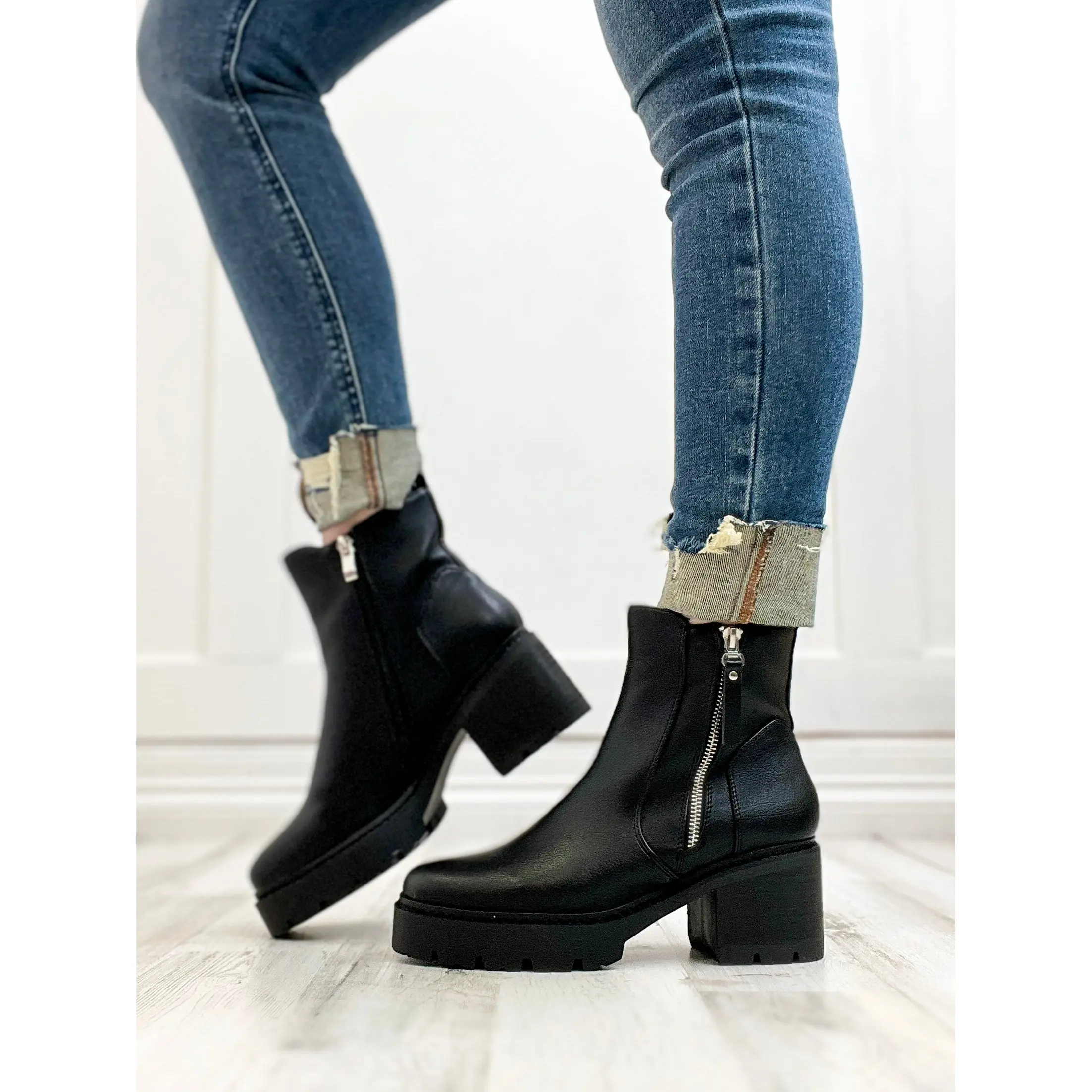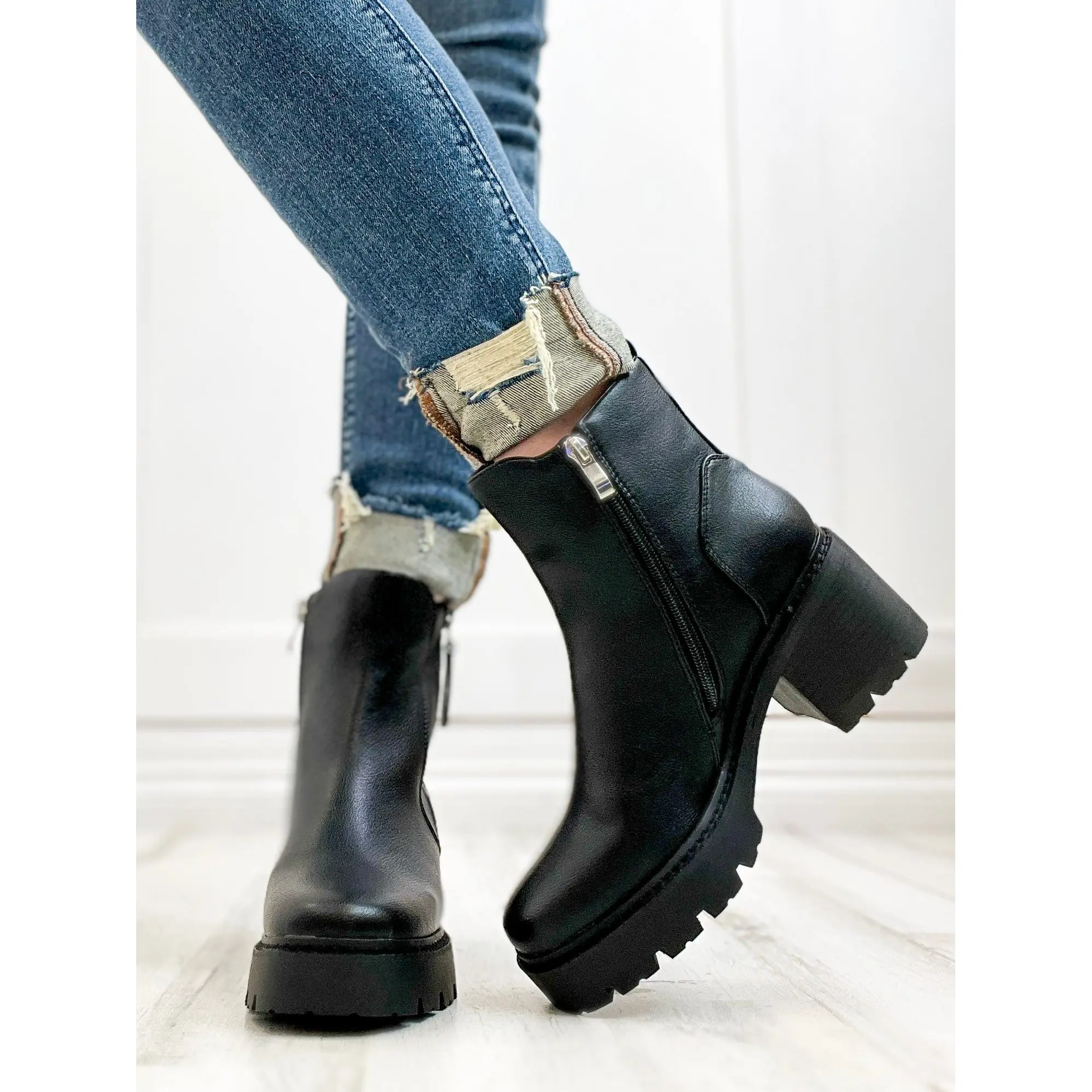 Step out in style and confidence with Corkys Up To No Good Booties! These sleek black booties will elevate any outfit and add a touch of edginess. The perfect combination of comfort and fashion, these booties are a must-have for any wardrobe. Take your look to the next level with Corkys Up To No Good Booties!