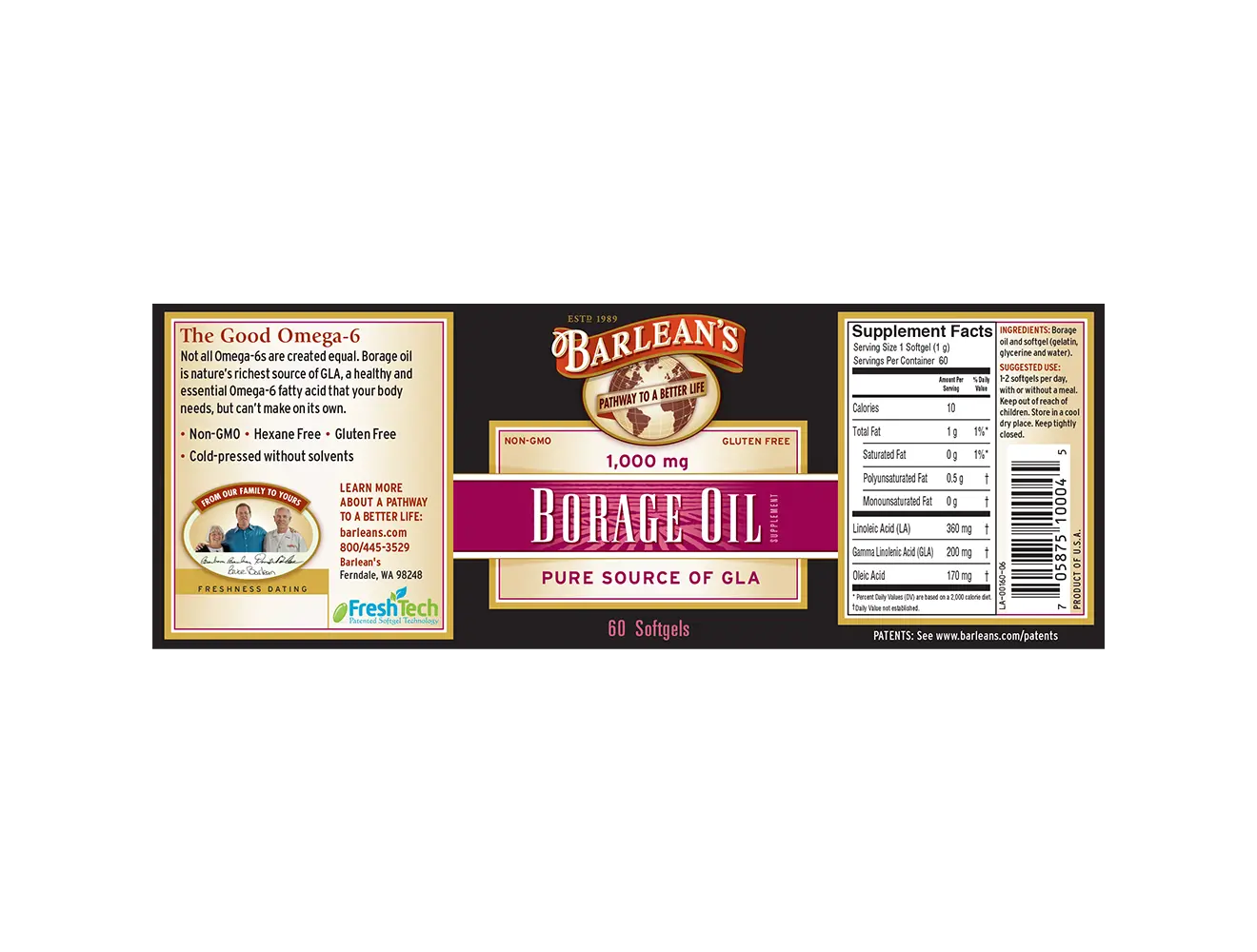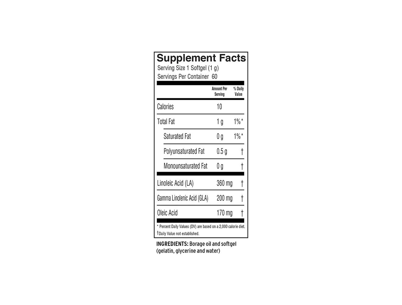 Borage oil is known as a pure source of a special fatty acid called Gamma-Linolenic Acid (GLA). Ordinarily, GLA is created in the body from dietary essential fatty acids such as those found in flax oil. However, in some people, GLA is not adequately produced in the body. Borage Oil offers a direct source of GLA for these individuals.