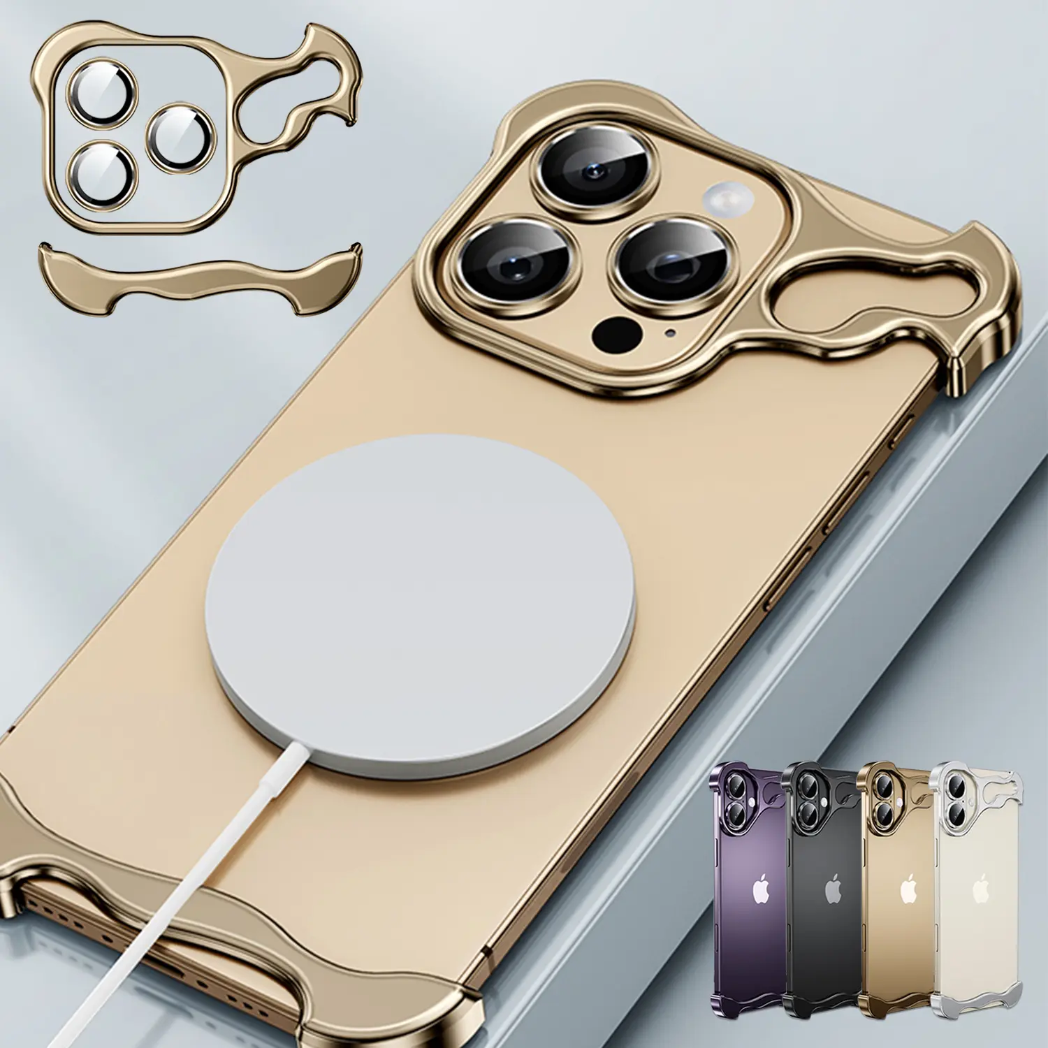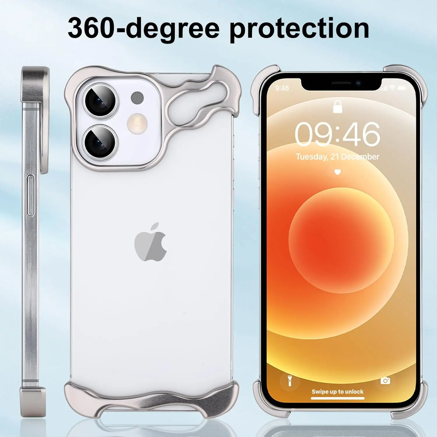 Borderless Electroplated Glossy Case For iPhone 17 Pro Max Air 17/16/15/14/13 Hard Shockproof Bumper Shell Irregular Titanium Alloy Lens Camera Protection Frameless Minimalist Protective Cover Elastomer Inlays Easy Fit Extremely Highlighting Personality