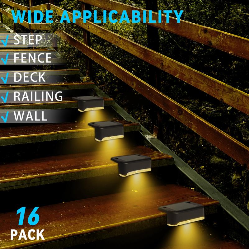 【Solar Lights for the Outside】No wires required, super easy installation. Install along any edge of the plane - stairs deck, backyard, fence. Use the included screws and 3M sticky tape.