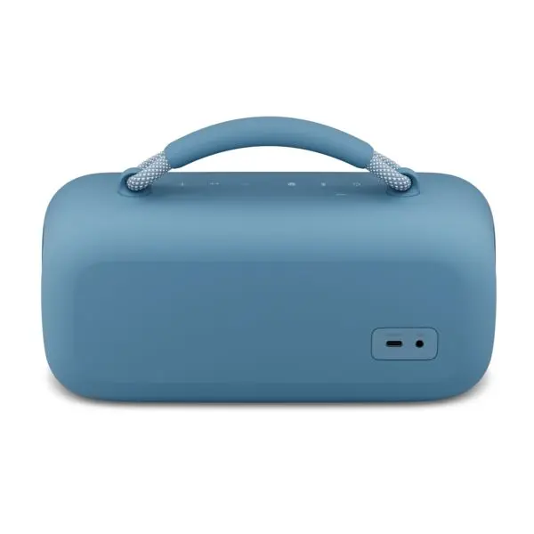 A compact design with grab-and-go handle crafted with a unique soft-textured rope makes the speaker easy to carry to any party.
