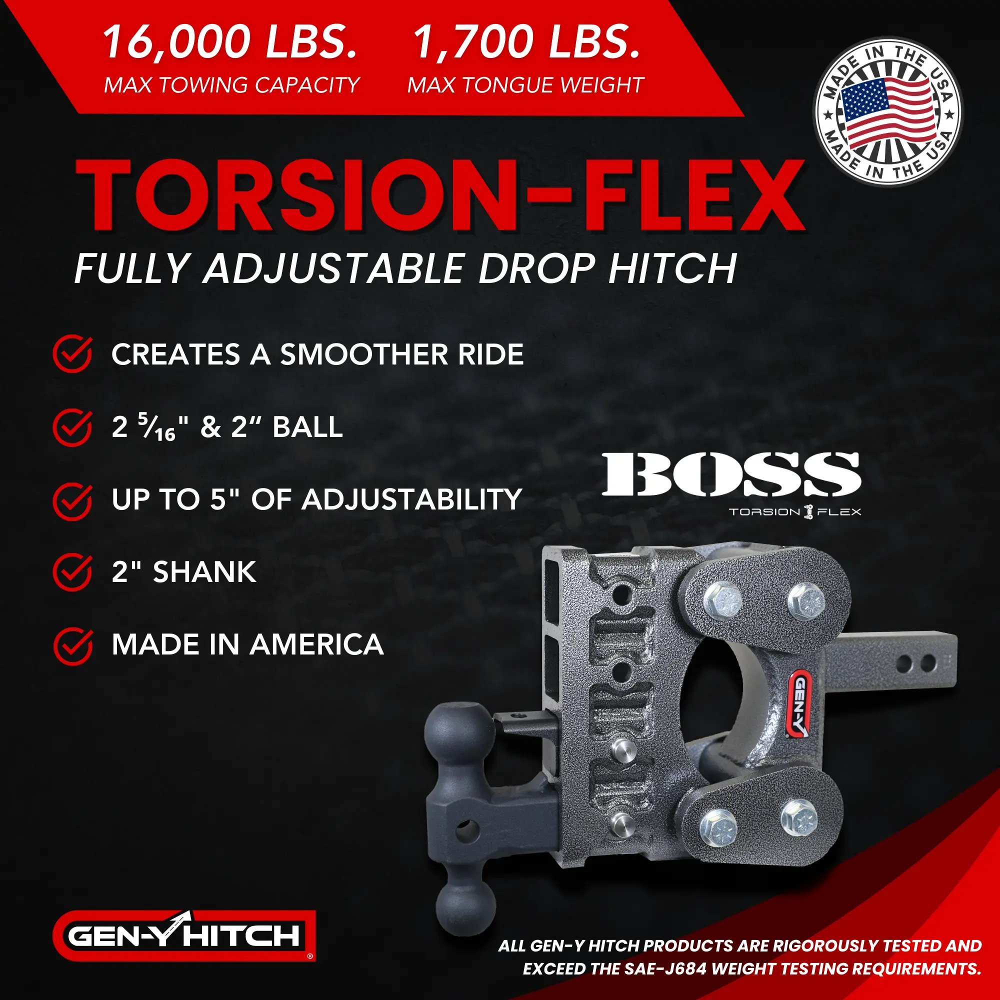 The BOSS TORSION-FLEX 2" Shank 5" Drop 1.7K Tongue Weight 16K Towing Capacity