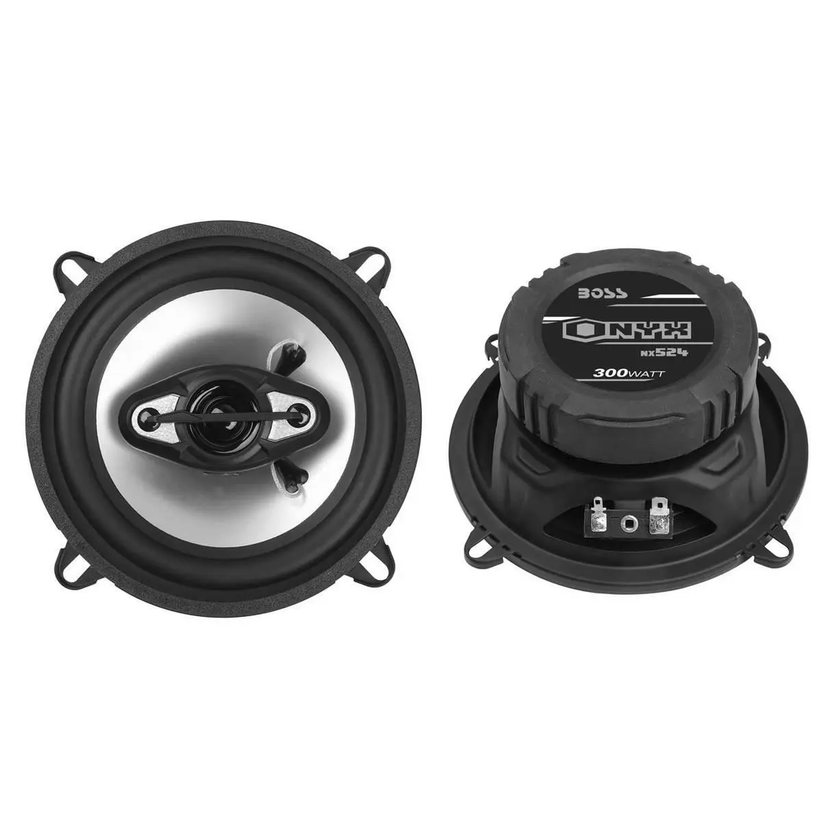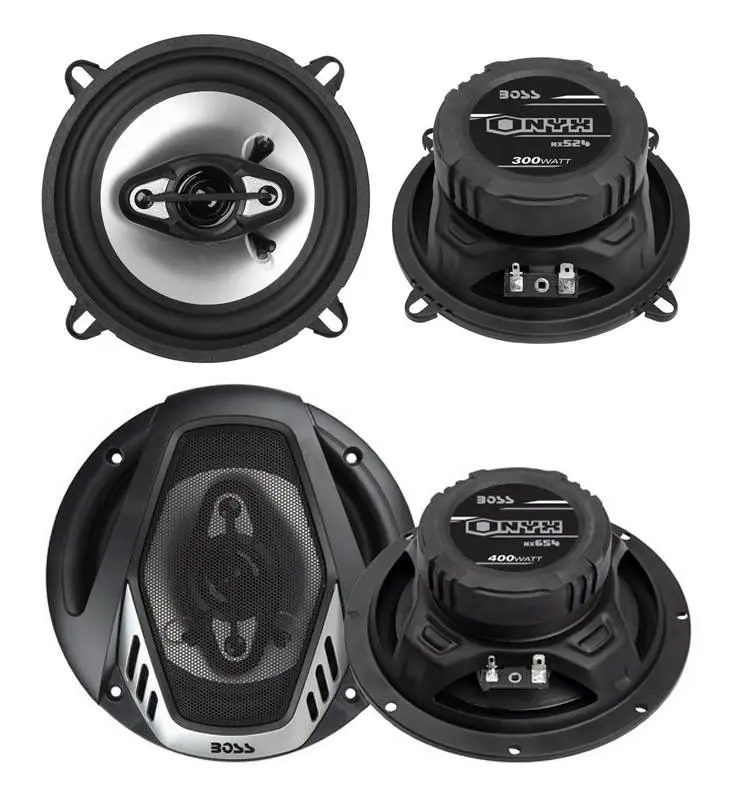 Upgrade your car audio system with the BOSS NX524 5.25-Inch 300-Watt and 6.5-Inch 400-Watt 4-Way Car Audio Coaxial Speaker Set.This bundle includes (2) 5.25-inch speakers and (2) 6.5-inch speakers to fully replace and enhance your current car audio setup. These 4-way, full-range speakers have expert power handling at 300 watts max and 150-watt RMS for the 5.25-inch size and 400 watts max and 200-watt RMS for the 6.5-inch size. The 5.25-inch speaker frequency response is 85 HZ to 20kHz with a 90 dB sensitivity. The 6.5-inch speaker frequency response is 65 HZ to 20kHz with a 90 dB sensitivity. Including optional metal mesh grills, you can protect the speakers from the elements, but if you are tight on space, you do not have to put them on. Each speaker is made with a poly injection woofer cone with a rubber surround and includes 2 tweeters and a 1.25 mylar cone midrange. Designed to easily fit into your car, both the 5.25-inch and 6.5-inch speakers work with a 2.25-inch mounting depth. The included installation hardware makes installation a snap.Enjoy higher quality playback in your vehicle with the 5.25-Inch 300-Watt and 6.5-Inch 400-Watt 4-Way Car Audio Coaxial Speakers from BOSS.