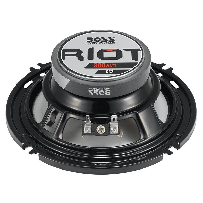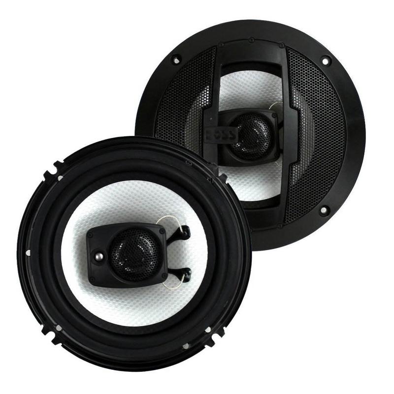 This sleek, black pair of Boss R63 6.5 inch 3 way car audio speakers features a maximum power of 300 watts with an impedance of 4 ohm. Other features include the aluminum voice coil material with a 1 inch midrange and a 0.5 inch tweeter.The voice coil is made with high quality aluminum and the cone is poly injected. The mounting hole is 2.187 inches deep and the frequency response ranges from 100 Hz to 18 Hz. These speakers are perfect for a step up from your original speakers.Upgrade your factory speakers with the Boss R63 pair.