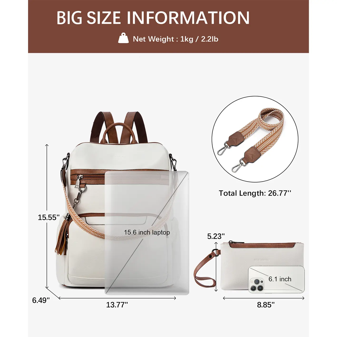 I love this! I was afraid the 14 inch would be too small but it’s perfect for my everyday purse back pack! Comes with a cute little clutch!