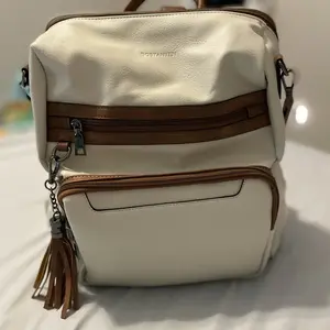 The perfect backpack/purse/diaper bag! The conceal pocket in the back is perfect for those mamas that carry! This bag is the perfect size!