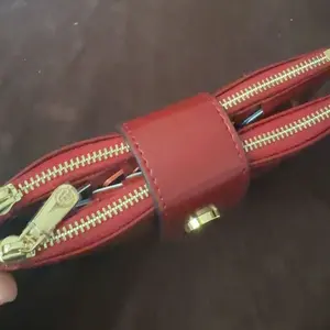 Super cute wallet, holds tons of cards. I love that there are two places with zippers. One can be for coins and important cards and the other for bills. I do like thay design. Once you add the cards the wallet gets a little bulky so be aware of that if you want something really flat.