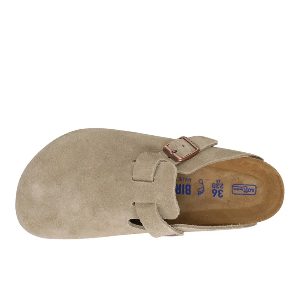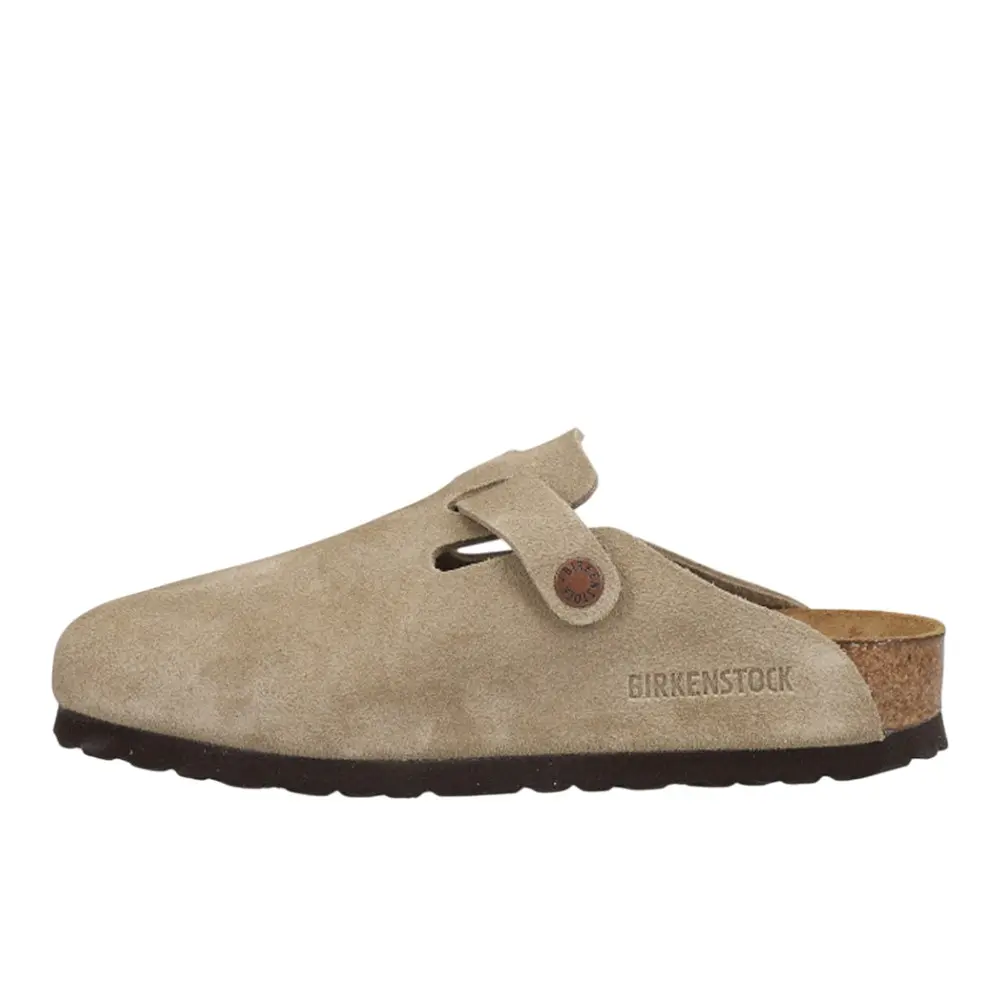 5. BIRKENSTOCK Mens Boston Soft Footbed Suede Leather Clogs Casual - Beige