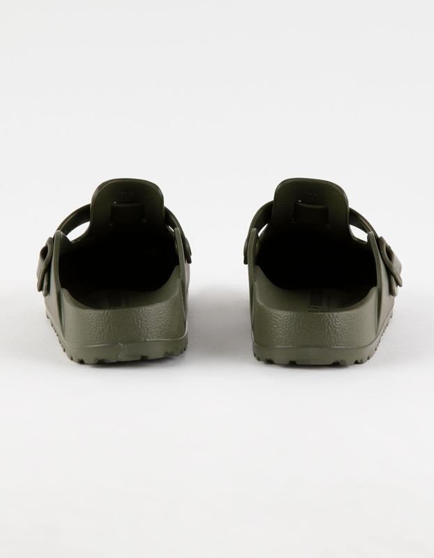 Birkenstock Boston Essentials EVA Clogs. The Birkenstock Boston is a veritable classic that can easily be worn all year round. The Boston has a legendary status thanks to its sophisticated, individual design. Shown in EVA, a synthetic waterproof and lightweight material. Super lightweight - great for after the gym or the beach. Imported.