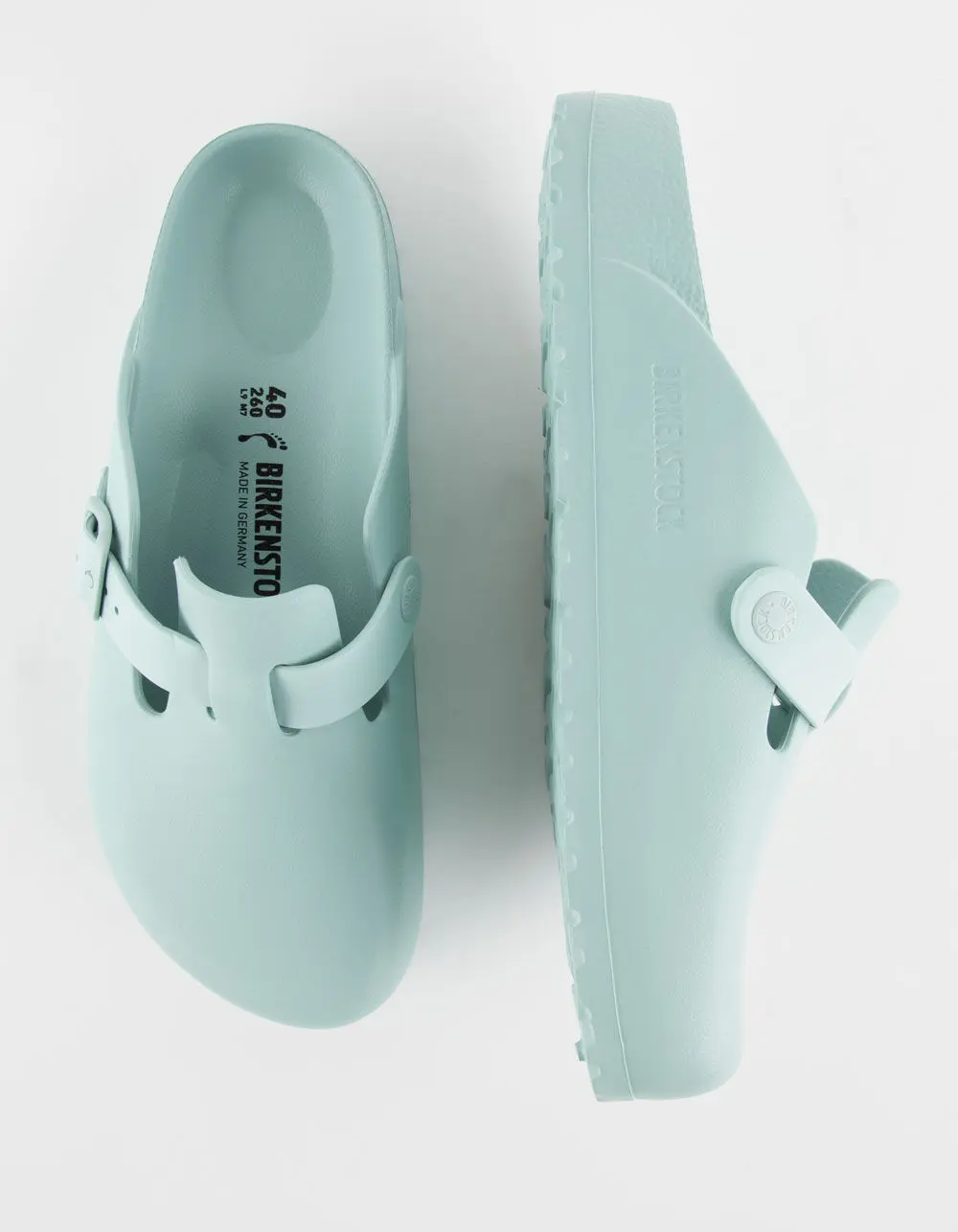 Birkenstock Boston Essentials EVA Clogs. Our best-selling clog in an ultra-lightweight style. The Boston EVA is made from water-friendly material, giving you a flexible design built on the contoured footbed you love most. The perfect pair for pre-workout, post-practice and all the rest days in between. Contoured footbed for legendary Birkenstock support. Style made from single piece of EVA. Water-friendly, flexible & lightweight. Adjustable strap with tonal pin buckle. Imported.