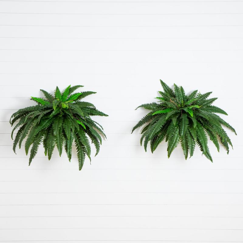 Graceful green fronds naturally spread out 48", showing off the numerous pinnates. Boston fern is well known for its attractive features and adaptability to any style of decor. Place this set of two on any high shelf or in a hanging basket for a symmetrical look.