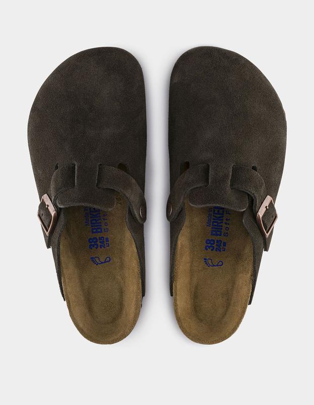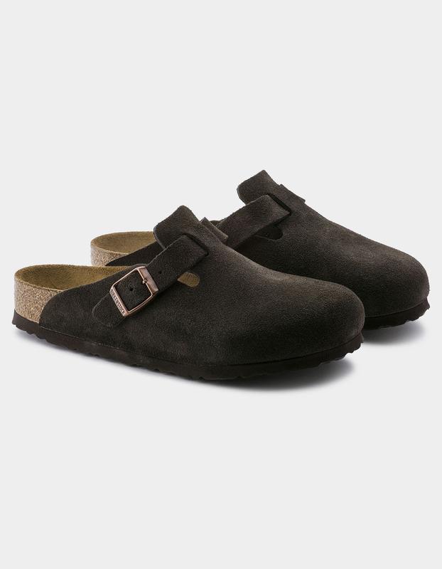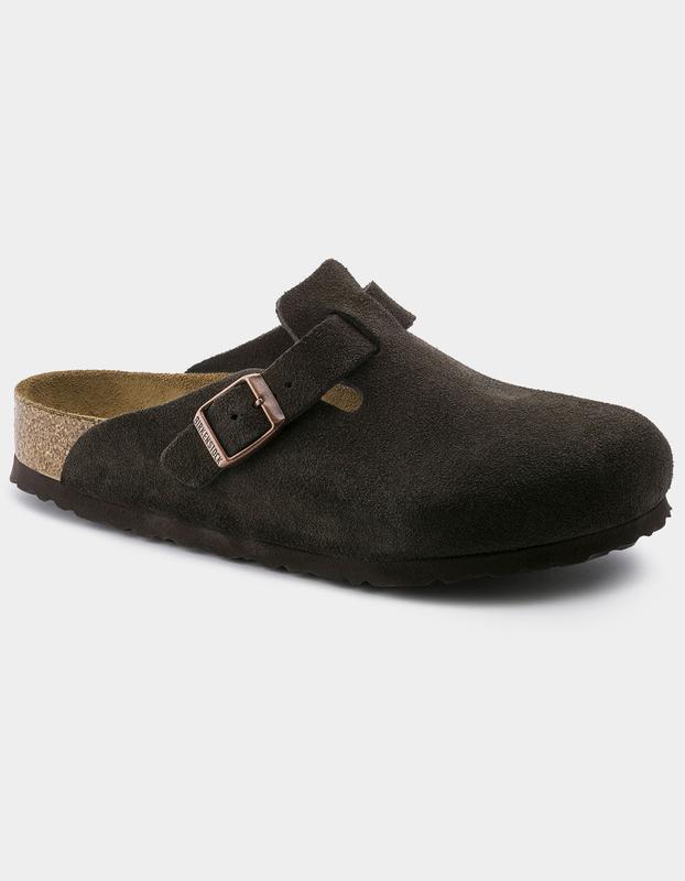 Birkenstock Boston Clog. Our most sought-after clog, the Boston lends a fashion-forward edge to any style. Velvety suede gives the laid-back look classic, every season appeal. Featuring an additional foam layer for cushioning, the soft footbed offers extra comfort plus go-all-day support. Cushioned Birkenstock soft footbed creates custom support with wear. Classic suede upper. Suede footbed lining helps keep you comfortable. EVA sole is flexible and lightweight. Adjustable strap with metal pin buckle. Medium/Narrow width. Imported.