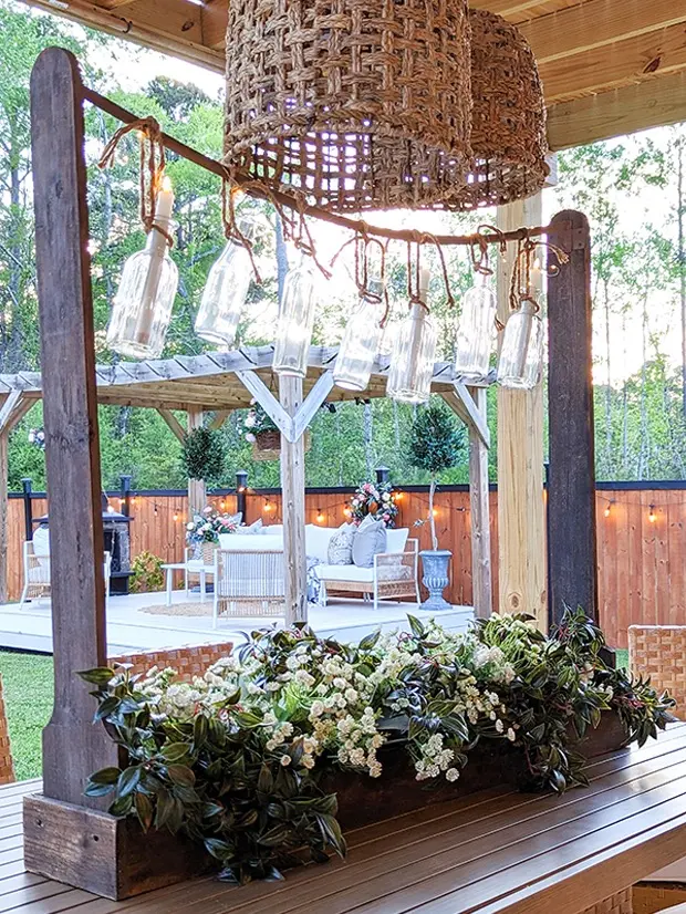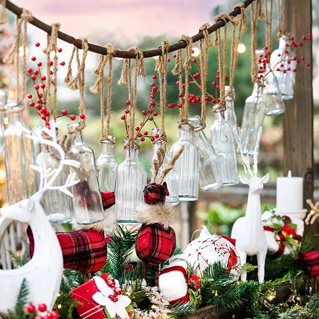 5. Bottle Garland Vase On Wooden Centerpiece Decor Decorative