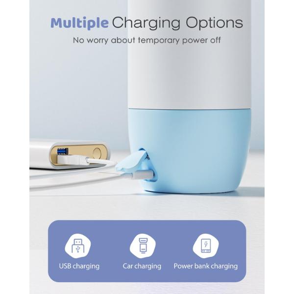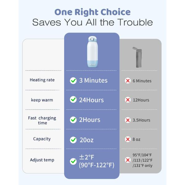 I love this so much helps me with baby getting his warm bottle everyday. You charge it and put the temp you want then turn it off and it last 2 to 3 hours water warm.