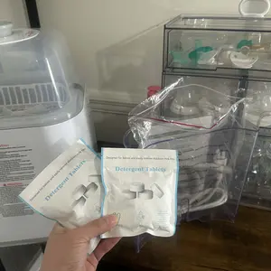 Love this! Makes keeping up with my sons bottles and my pump parts so much easier to manage as a full time working mom. You just pop all your pieces in, add the water and a washing tablet and you are ready to go. I have had this for over a month and I'm still on the first of the 2 little samples of the washing tablets they send with the machine. Super quiet too!
