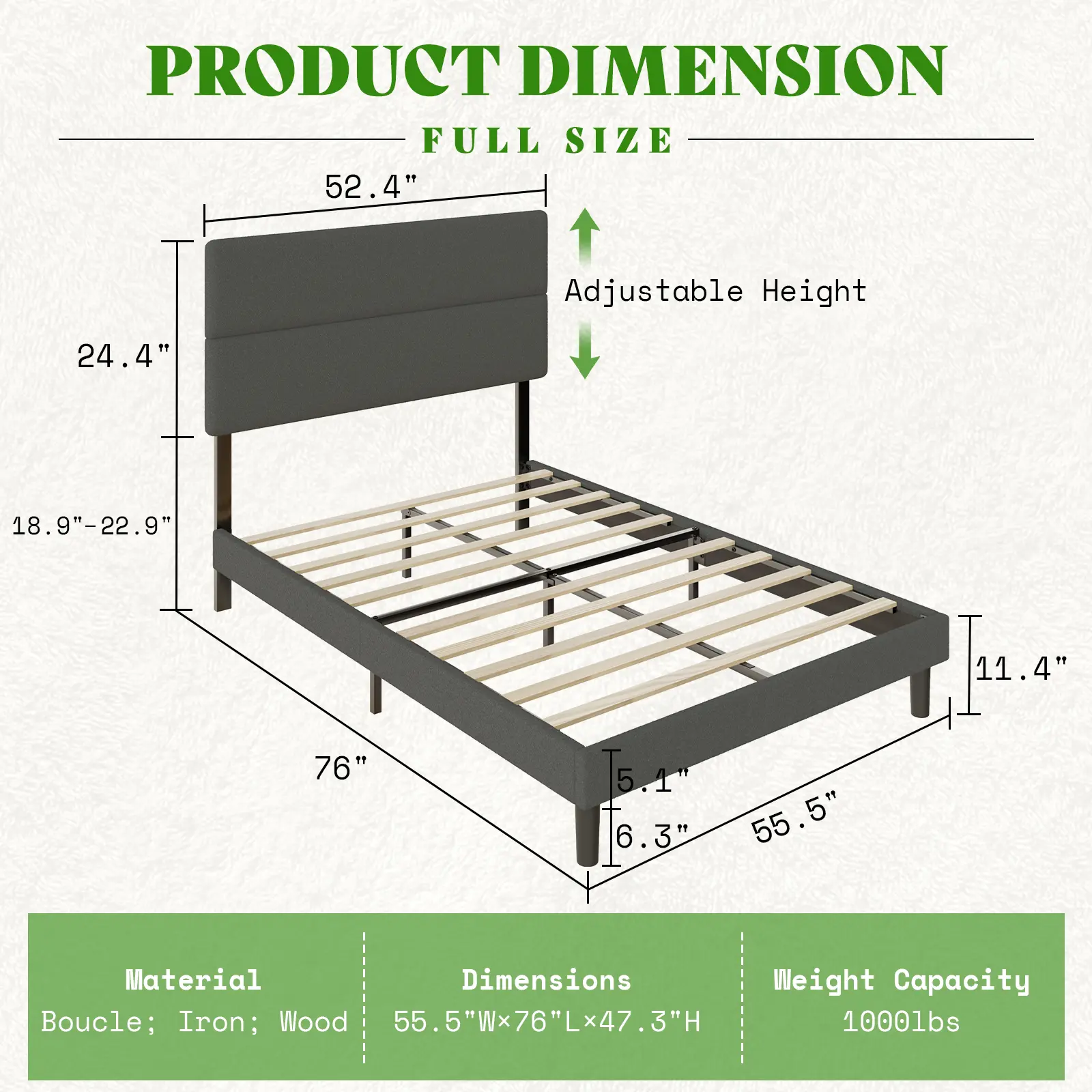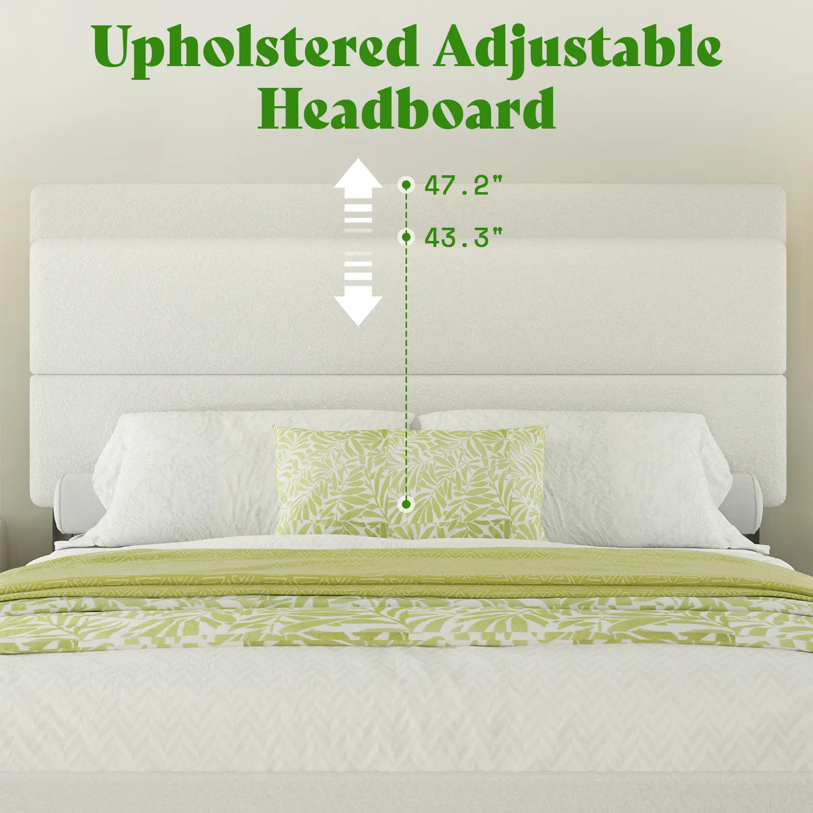 Three level to adjust headboard: 43.3inch - 47.2inch