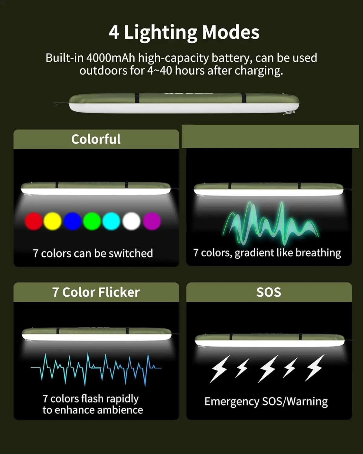 ·4 Lighting Modes: Choose from 4 different lighting modes to suit your needs, whether you're camping or hiking. 🌲