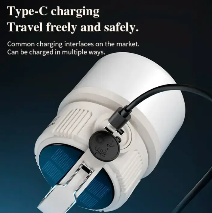 Dual charging versatility: solar panel and type-c charging for power flexibility on outdoor excursions