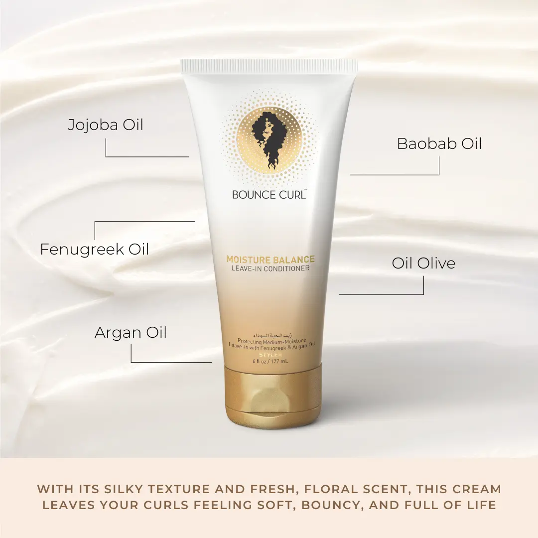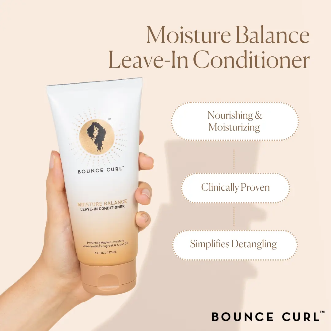 Bounce Curl Moisture Balance Leave-In Conditioner is a proven, medium-moisture formula enriched with Jojoba, Olive, and Argan Oils it hydrates, protects, and enhances manageability. As an ultra-concentrated leave-in it delivers daily hydration and helps keep hair soft and smooth without weighing it down.