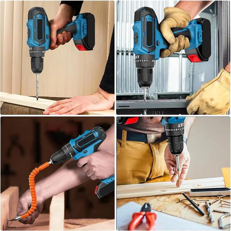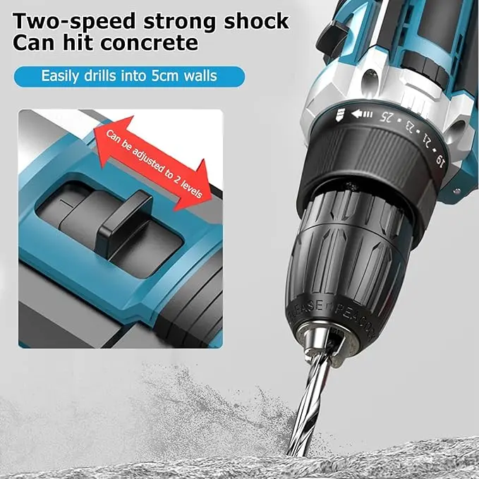 Versatile Speed Control and Accuracy: Featuring a 25+2 torque setting and a top speed of 1650 per minute, this blue power drill can precisely handle a variety of materials and tasks. Whether you're drilling holes or driving screws, easily adjust the settings for optimal results.