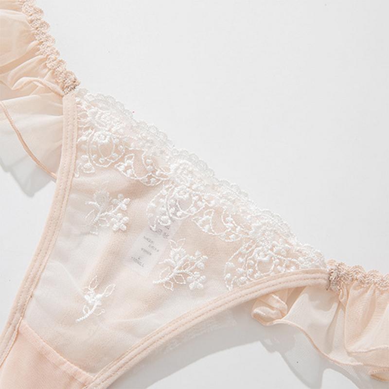 • Feminine & Romantic Aesthetic: The soft color palette, delicate lace, and playful ruffle work together to create a look that is both subtly sensual and irresistibly charming.