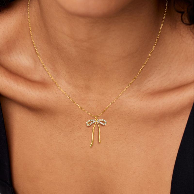 Gold irregularly hollowed-out zirconia bow necklac
