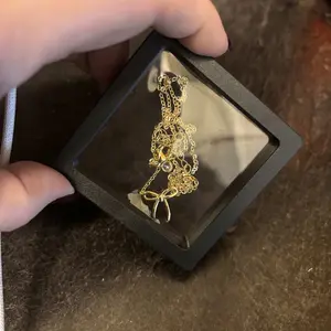 So cute!! It’s a little bow. Comes in a great package so it doesn’t get tangled. I love this neckless!