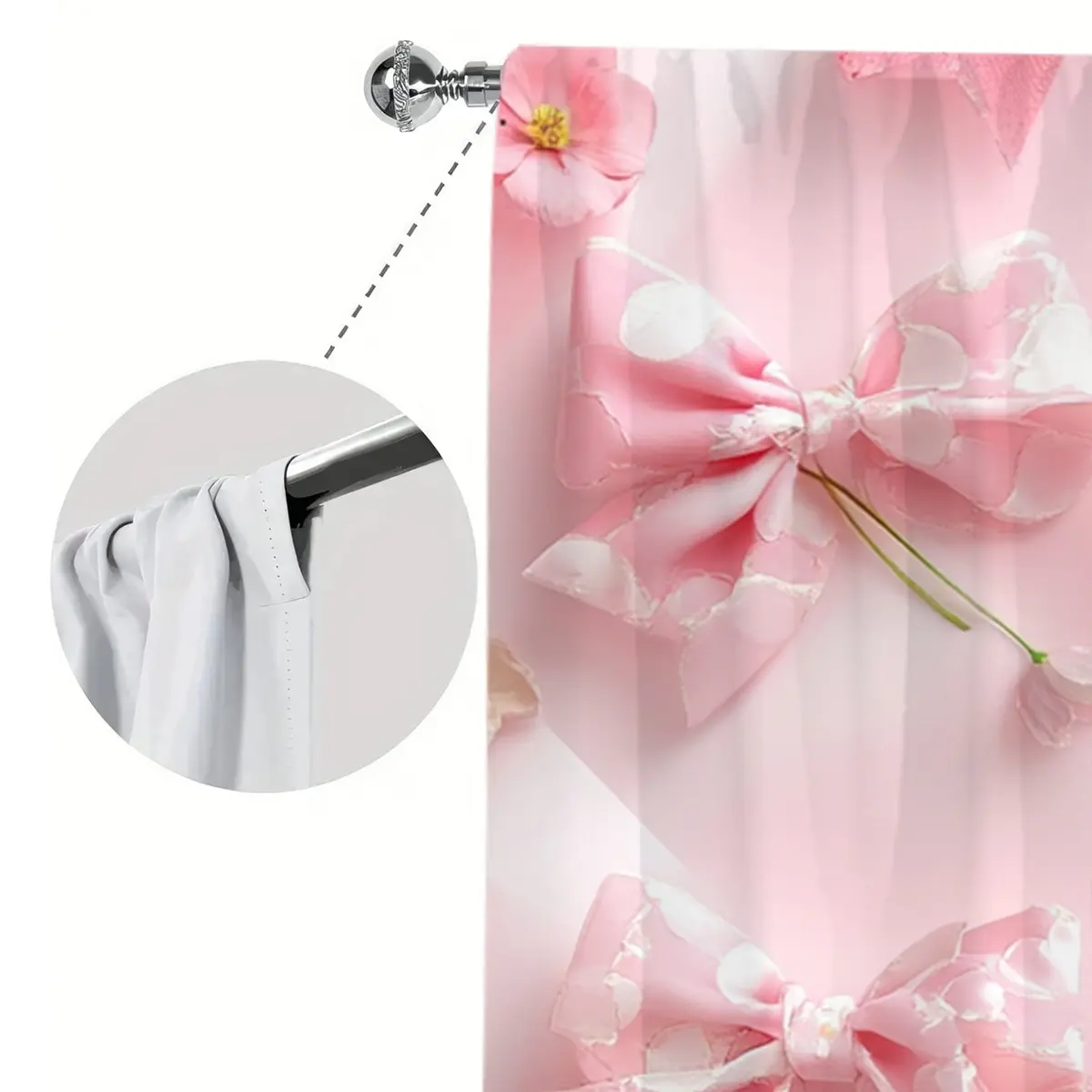 Bow Pattern Curtain, 2 Counts/set Modern Simple Home Decorative Curtain, Home Decoration Curtain, Home Decor for Living Room Bedroom Study Room