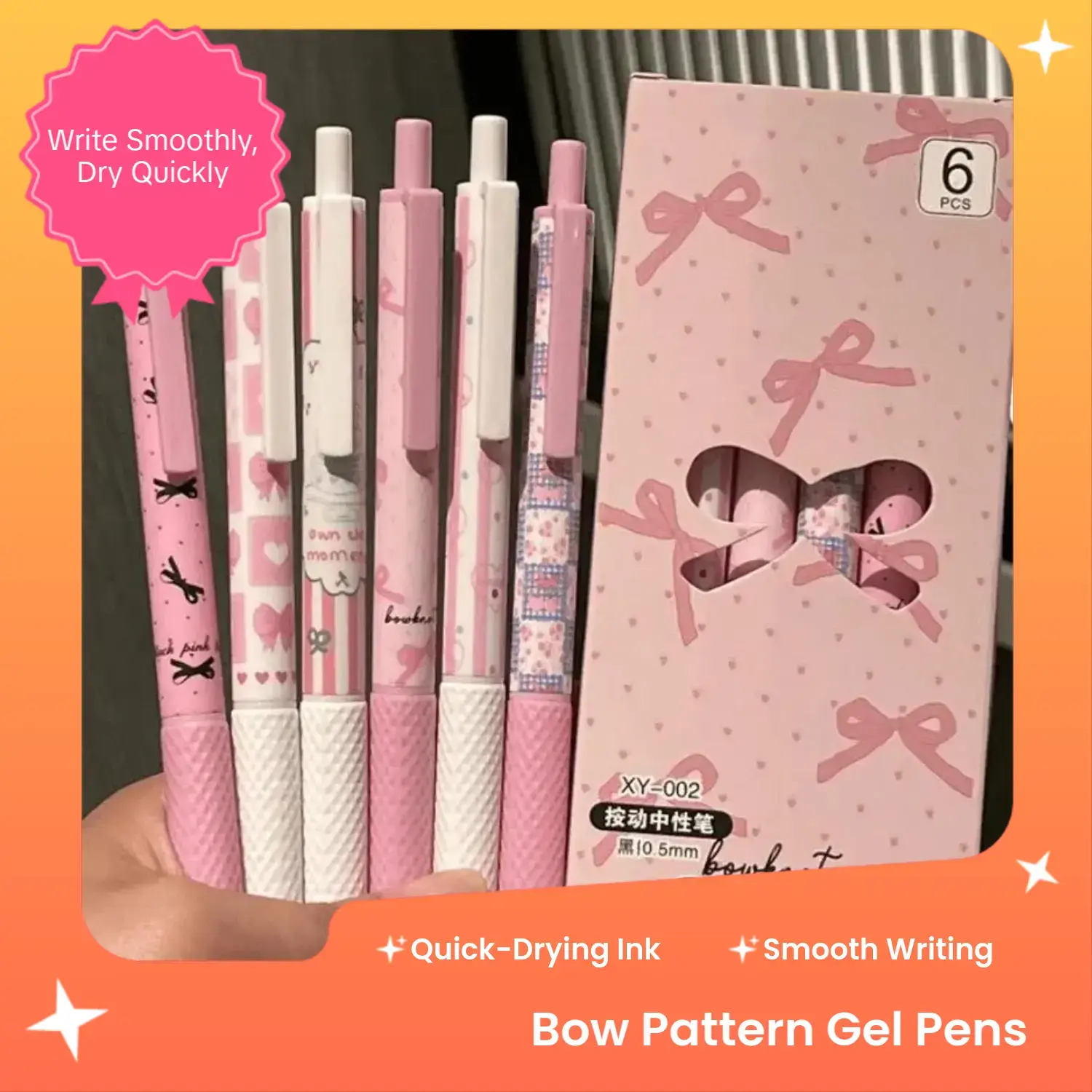 Bow Pattern Gel Pen Set, 6/12/18 Counts, Quick Drying Gel Ink, Smooth Writing for Home Office School, Aesthetic Japanese Stationery #gelpens #erasablegelpens #acrylicpens #coloredpens #japanesestationery #journalingpens #cuteschoolsupplies #custompens #drawingset #stationerygoals