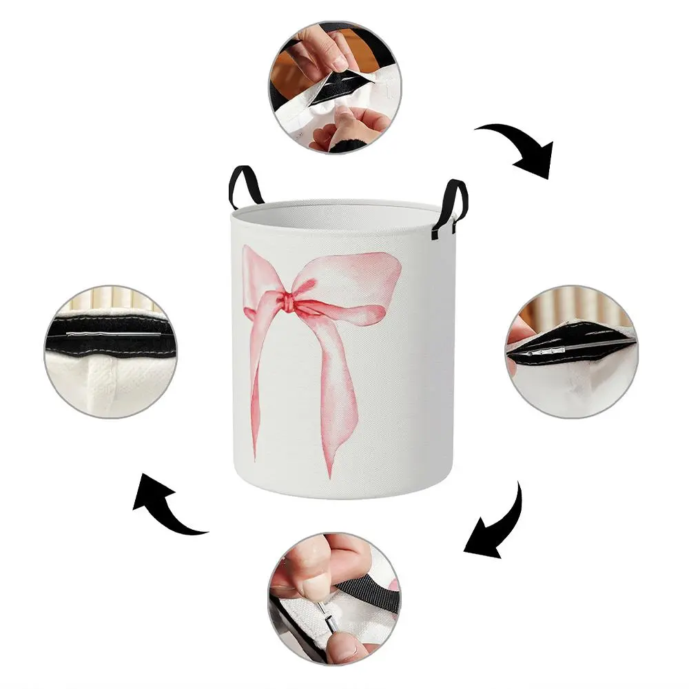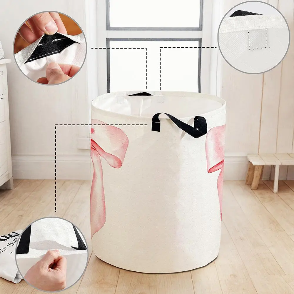 Bow Pattern Laundry Basket, Large Capacity Dirty Clothes Storage Basket with Handle, Household Foldable Dirty Clothes Basket for Home, Laundry Hamper