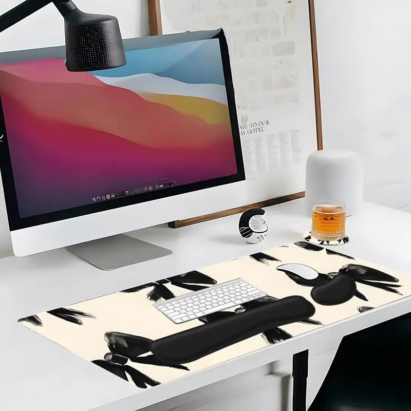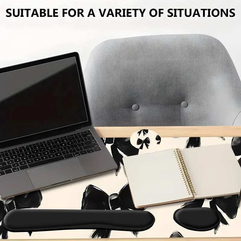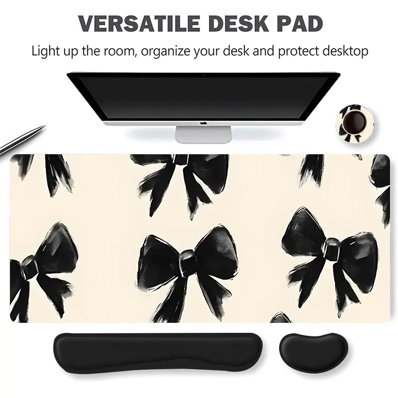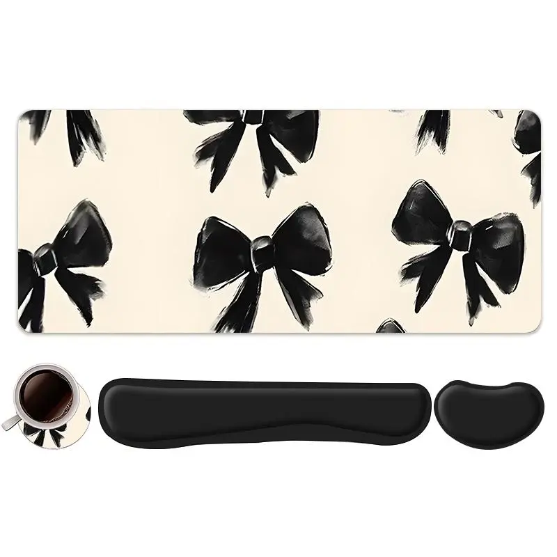 Bow Pattern Non Slip Mousepad & Keyboard Wrist Rest & Coaster Set, Ergonomic Wrist Support, Computer Mat Mouse Pad Coaster Set for Home Office Gaming