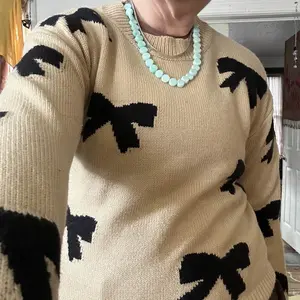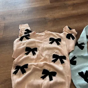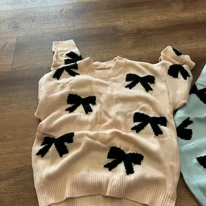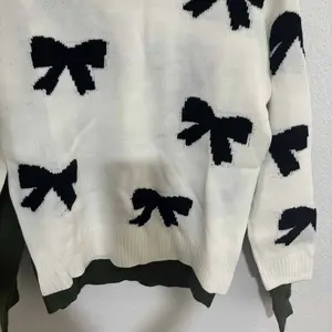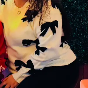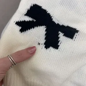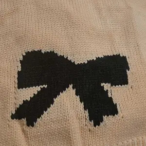 Cute but defective. There’s big gaps and holes through the knitting of the sweater. I’d have to wear something underneath it. All the holes are around the bows throughout the sweater. I’m sure it has something to do when they added the bows to the sweater.