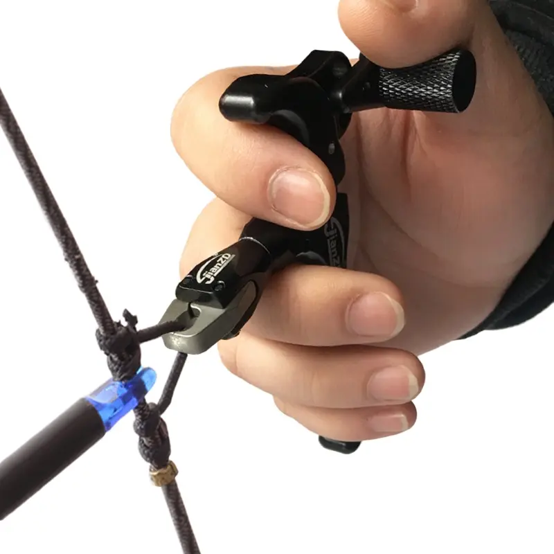 ·1. The 360° rotatable thumb release for compound bows allows you to shoot from any angle, increasing the flexibility and accuracy of thumb release archery. The compound bow thumb release features an automatic jaw closure, enabling easier control of arrow release for compound bows. The archery thumb release allows you to adjust the sensitivity of the archery release trigger to match your archery release style.