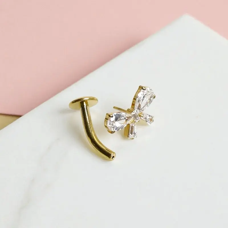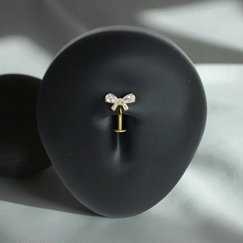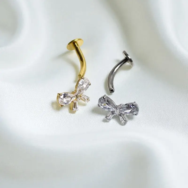 Bow Belly Button Ring Gorgeous Cz Gem Decor Gold Silver Threadless Push Pin Piercing Jewelry for Women