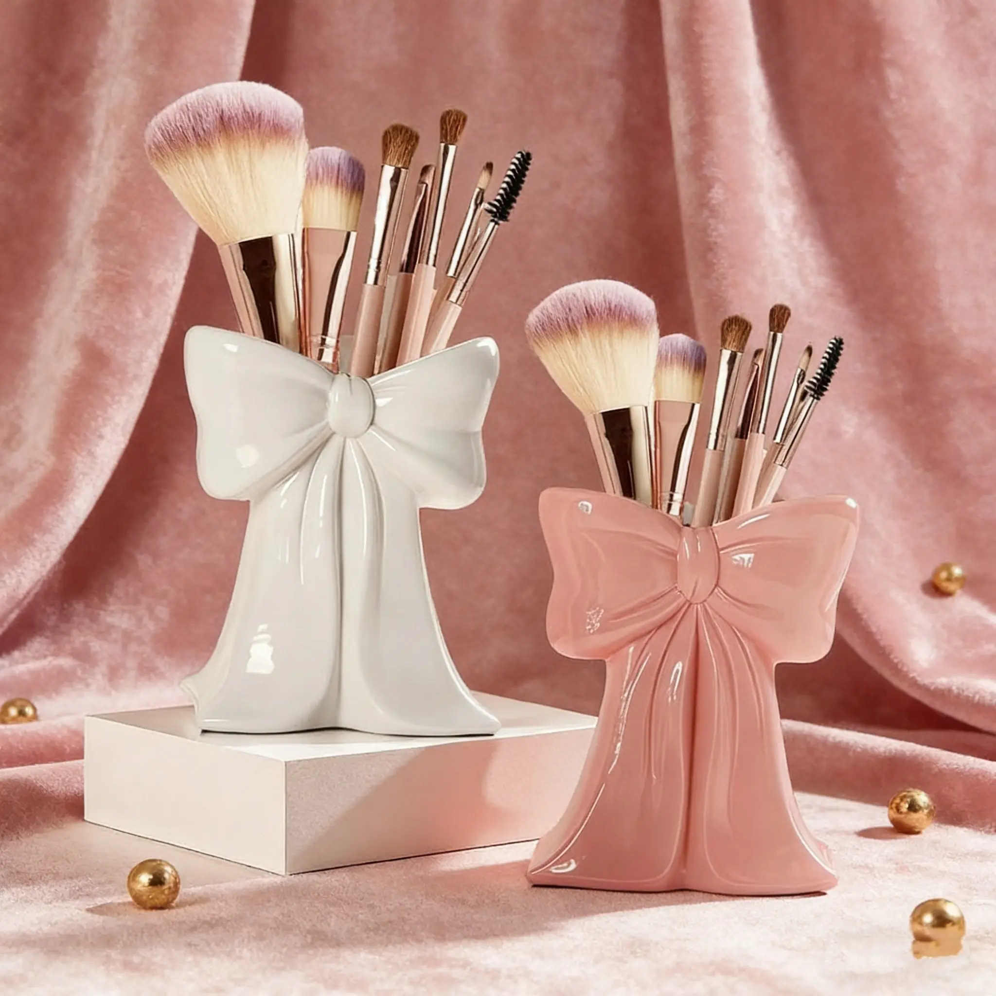 Bow Shape Makeup Storage Box, Cosmetic Tool Organizer, Desktop Decorative Vase, Living Room TV Cabinet Bow Decoration, Beauty Organizer, Beauty Supplies Organizer