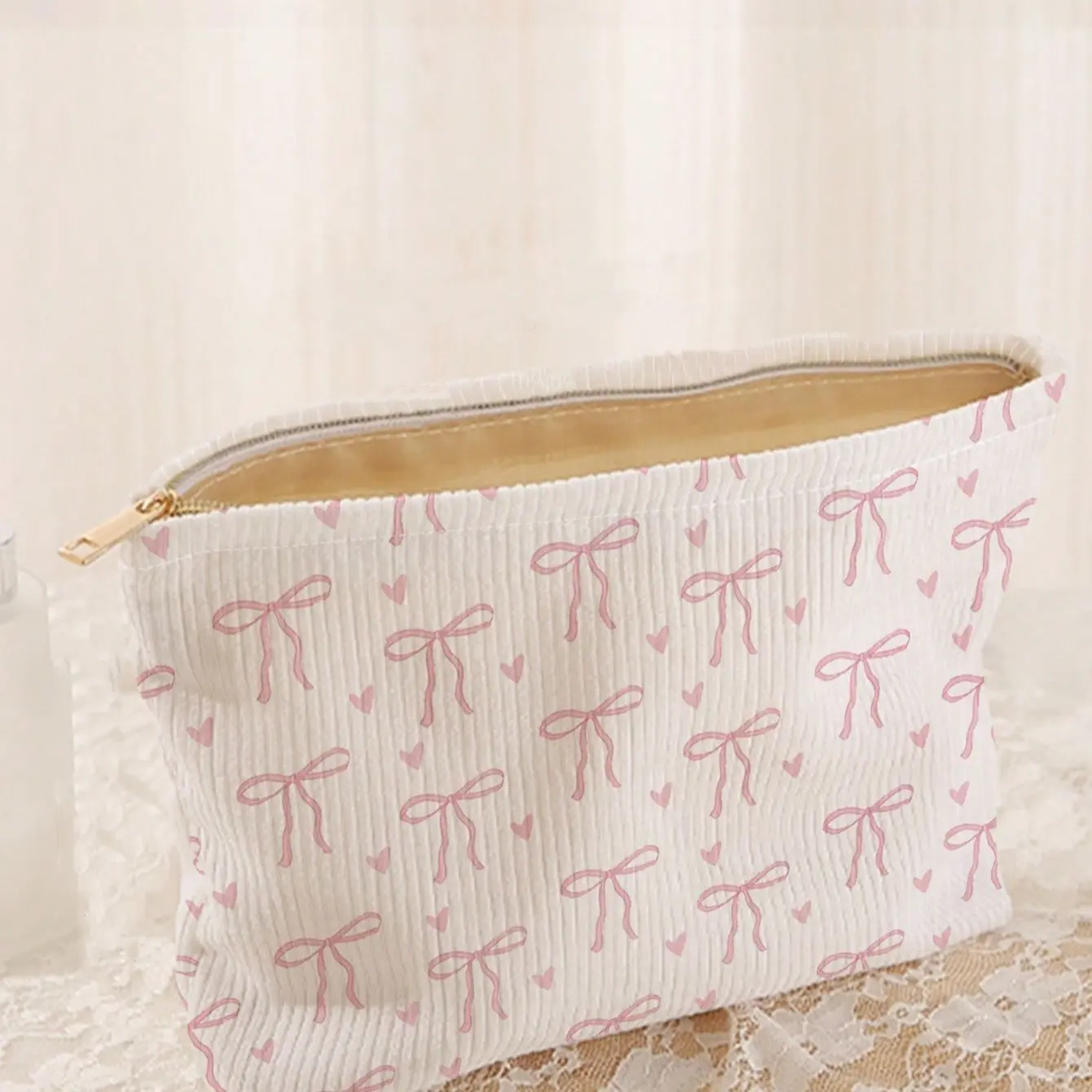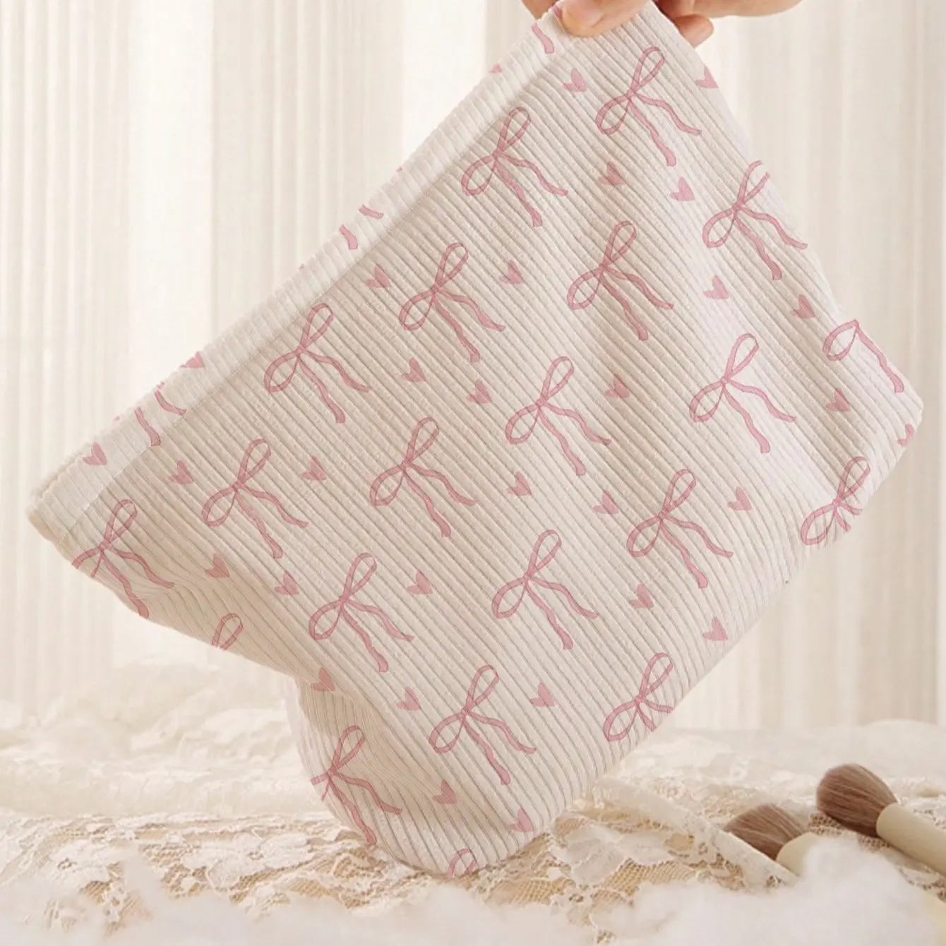 【Bow Print】: Features a charming bow print pattern that adds a playful touch to your makeup routine.