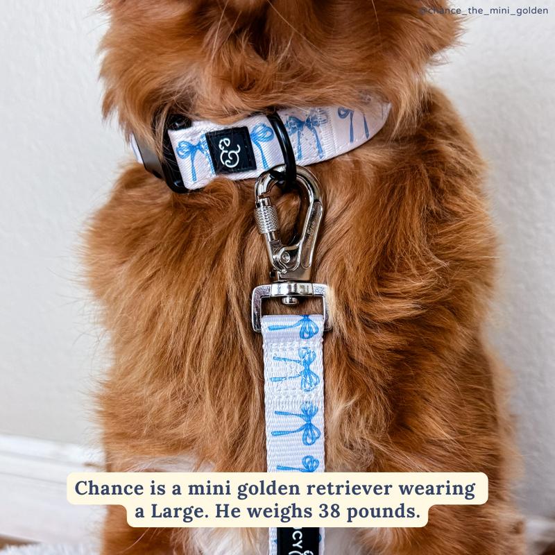This blue-tiful Bowwow Wow! print leash pairs perfectly with the matching Reversible Harness and walk set, but is bold enough to be used on its own. Get a grip and lock it in: featuring a padded neoprene handle for comfort and premium lockable carabiner for added safety.