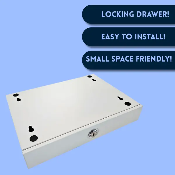 The Box-ie Small Under-Surface Locking Storage Solution for Small Spaces in Black Silver or White Metal