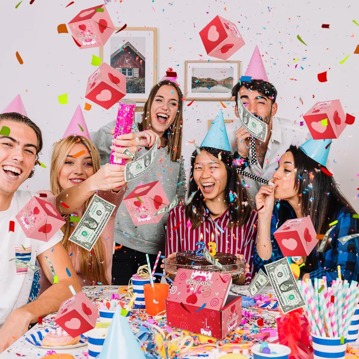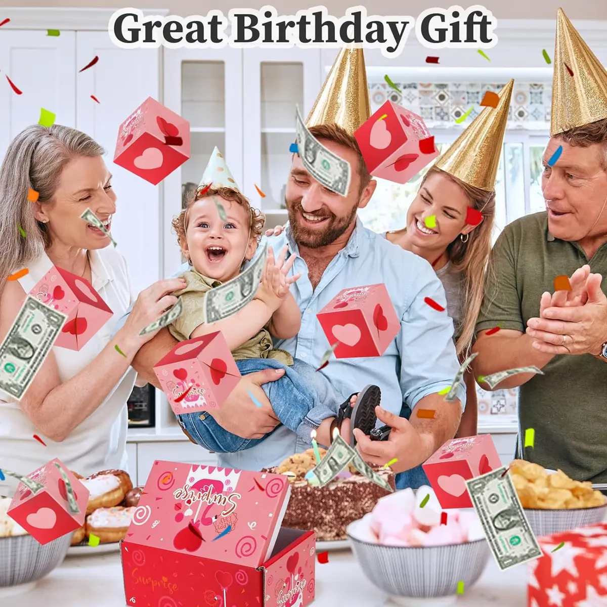 12 Bounces Surprise Gift Box Explosion Unique Folding Bouncing Red Envelope Cash Box for Valentine's Day Gift Birthday Anniversary Christmas and Proposal