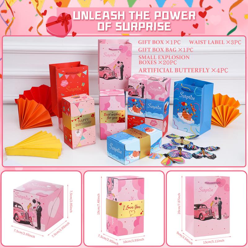 Tired of boring gifts? Our Surprise Explosion Box is here to revolutionize your celebrations! Watch as it bursts open with a cascade of 20 sequential pop-up compartments, slowly building excitement as it reveals your hidden cash gift. It's more than just money; it's a memory they will cherish forever.