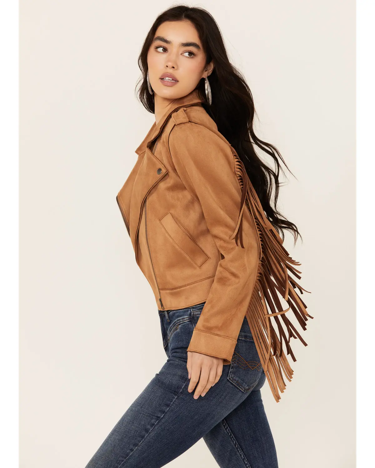 Idyllwind Women's Boxcroft Fringe Moto Jacket - Iwfa23o29-Tan