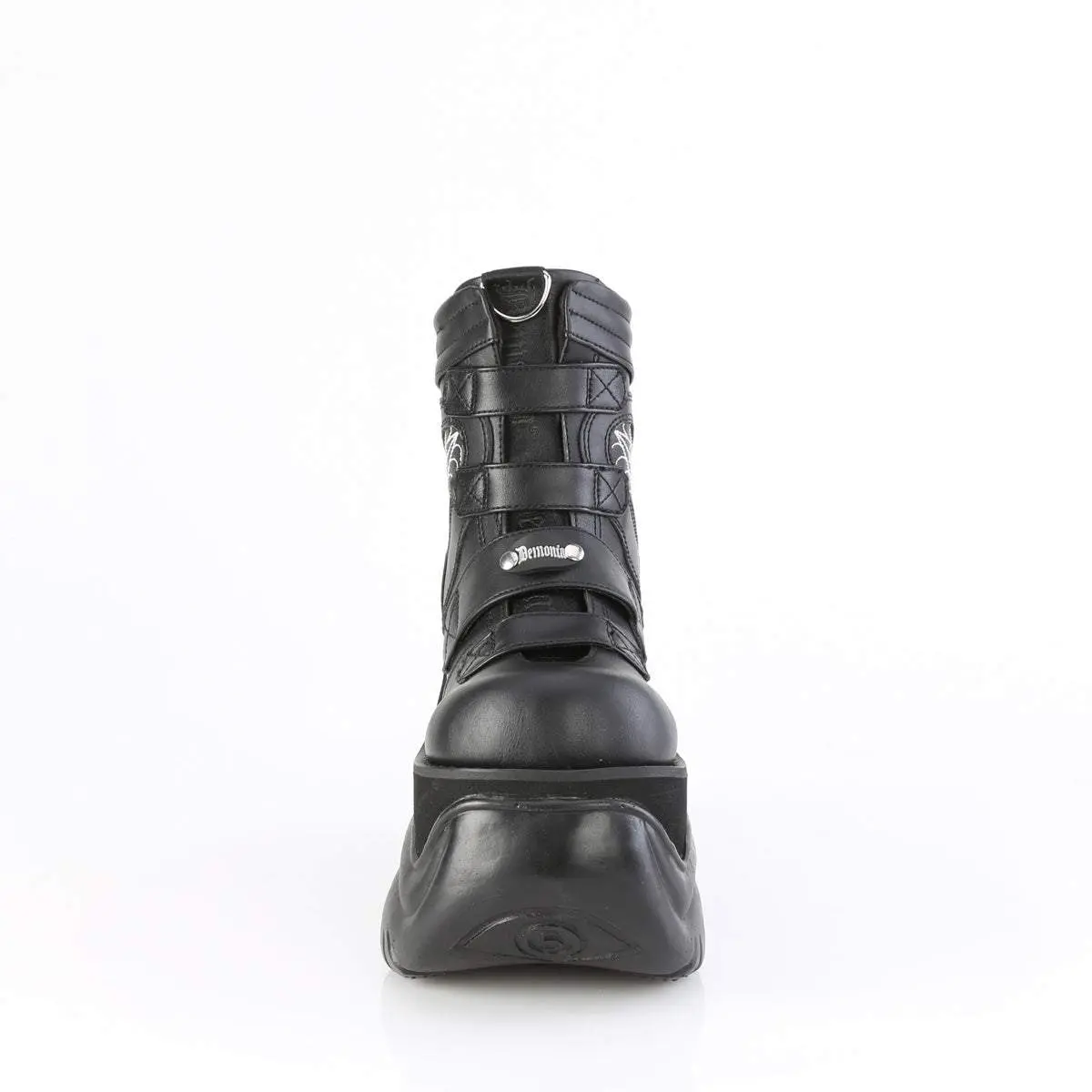 5. Demonia Men's Boxer-70 Mid-Calf Boot with Ornamental Straps and Spider Web Embroidery
