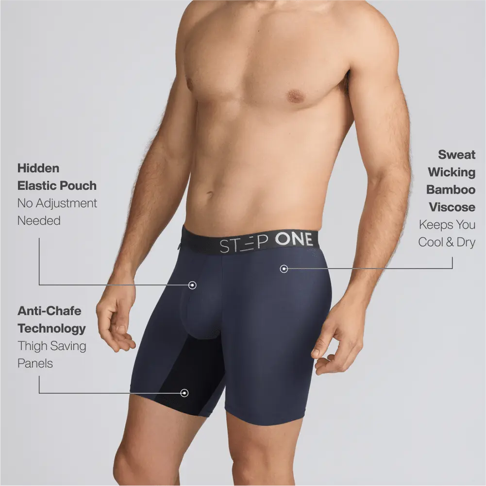 Step One Men's Boxer Briefs are designed with innovative comfort features and premium eco-friendly materials to provide unmatched support and breathability throughout your day. UltraGlyde Panels – Friction-resistant, anti-chafe panels prevent leg ride-up and eliminate the need for constant adjustments. No riding up, no re-adjusting! Hidden 3D Comfort Pouch – A hidden elastic band surrounds the pouch area to keep everything comfortably and securely in place, providing support all day. Super Soft & Breathable Fabric, Viscose derived from Bamboo – Made from a blend of 95% viscose derived from bamboo and 5% spandex, this fabric wicks away moisture, promotes airflow, and is gentle on sensitive skin. Produced using a closed-loop system for minimal environmental impact. Inclusive Sizing – Available in 9 sizes (S to 6XL), making them accessible for every body. If you're between sizes, we recommend sizing up for optimal comfort. Best Suited For – Guys with thicker legs Our packaging is made from Corn Starch put it with food and garden waste. The packaging may show slight damage upon arrival, but the rest assured, the contents inside remain intact.