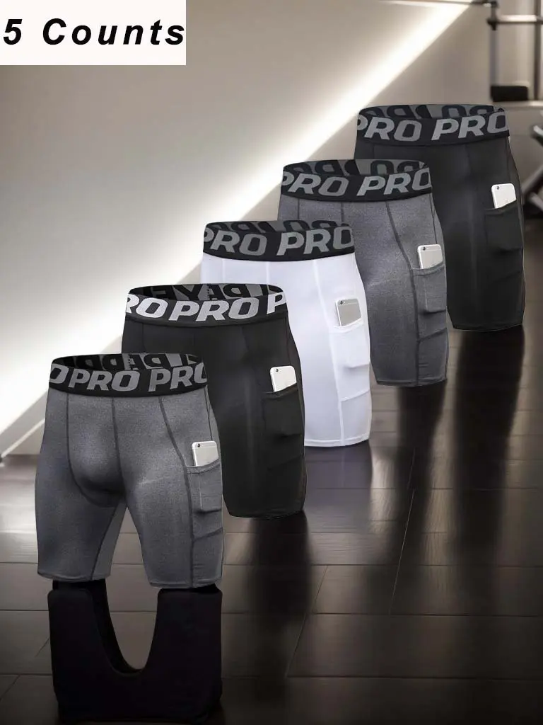 5 Pack Men's Letter Tape Pocket Boxer Brief, Quick Drying Breathable Comfortable Compression Underwear for Men, Casual Men's Underwear for All Seasons springtok